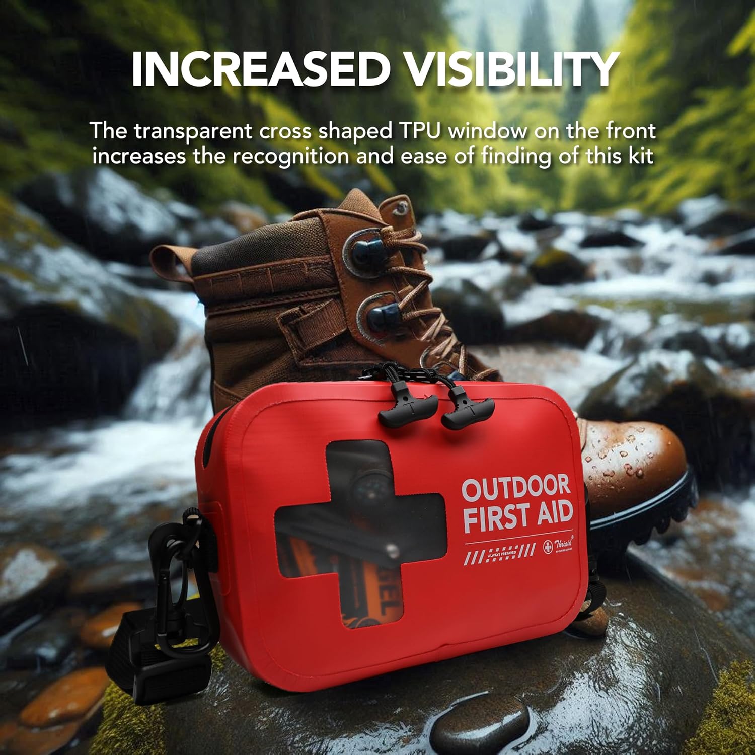 152 PCS Waterproof First Aid Kit, Portable Small Boat Dry Bag Bug Out Bags, Emergency Medical Kit Ideal for Boating, Camping, Fishing, Kayaking, Floating, Red