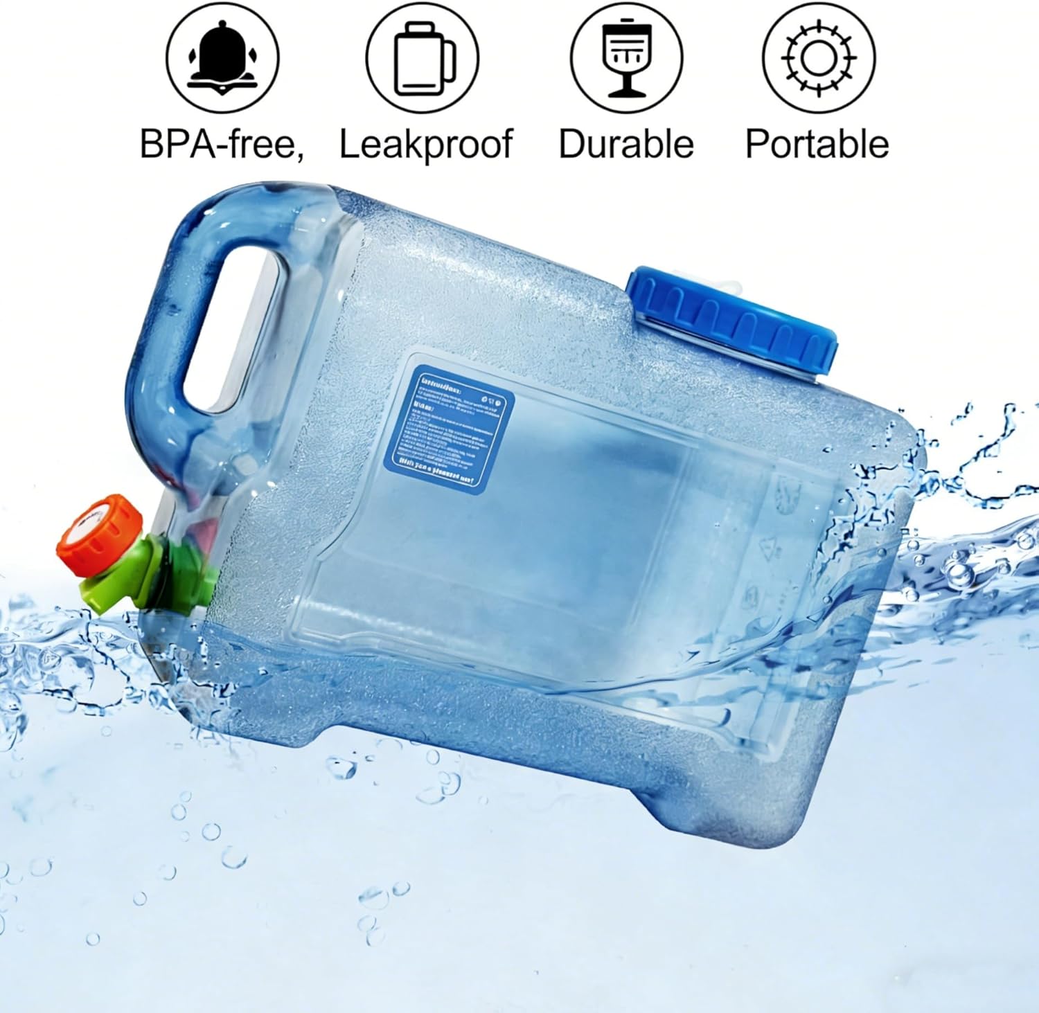 3.17 Gallon Water Container with Spigot, Portable Water Jug, No Leakage Camping Bucket with Tap, BPA Free Emergency Water Storage Tank for Camping, Vehicle, Car, Outdoor Hiking, Picnic