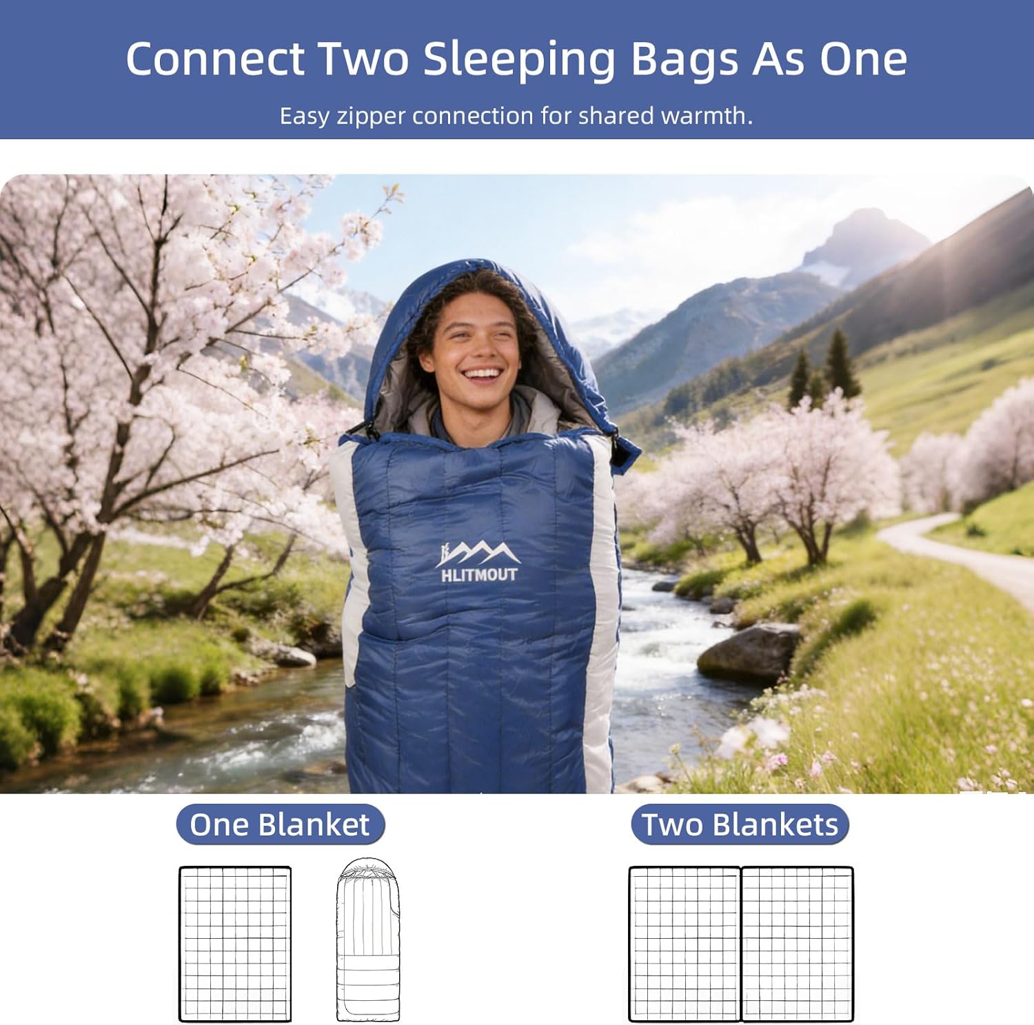 3-in-1 Down Sleeping Bag for Adults with Detachable Hood, 32°F 45°F Rectangular Lightweight Down Blanket Sleeping Bag for Camping Hiking and Backpacking Outdoor and Indoor 4 Season