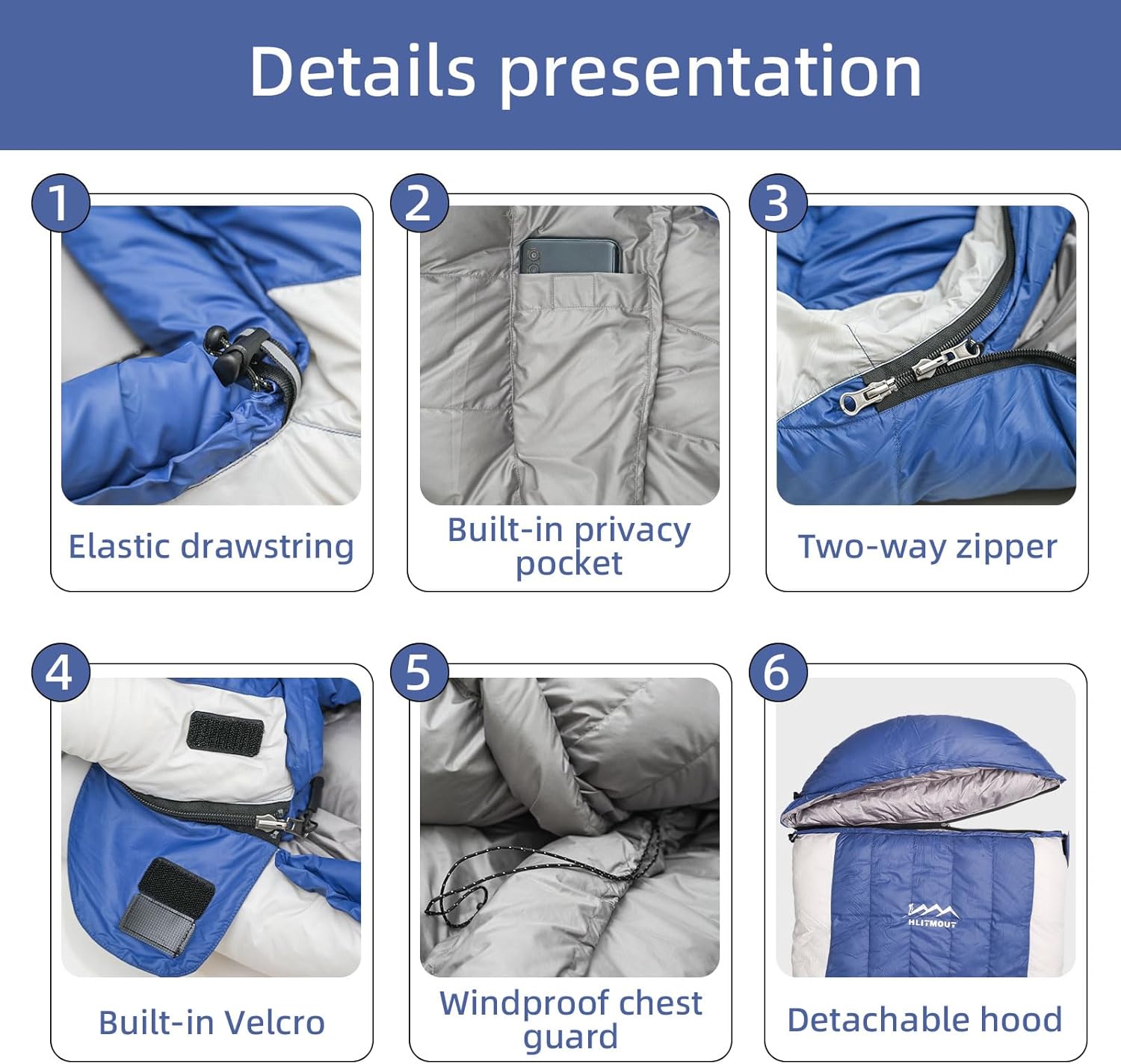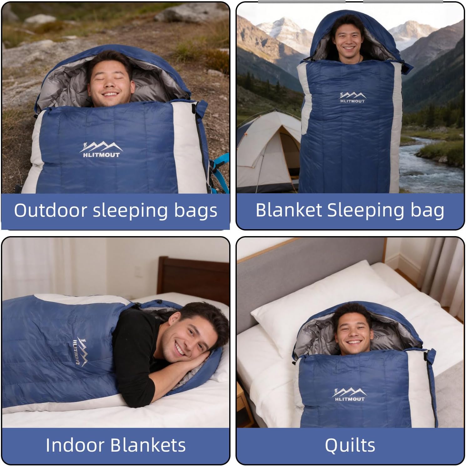 The 3-in-1 Down Sleeping Bag is designed for versatility and comfort, suitable for both outdoor adventures and indoor use. It features a detachable hood, allowing you to customize your sleeping experience based on the weather. This sleeping bag is filled with 680FP traceable white duck down, providing a lightweight yet warm option for temperatures ranging from 32°F to 45°F.