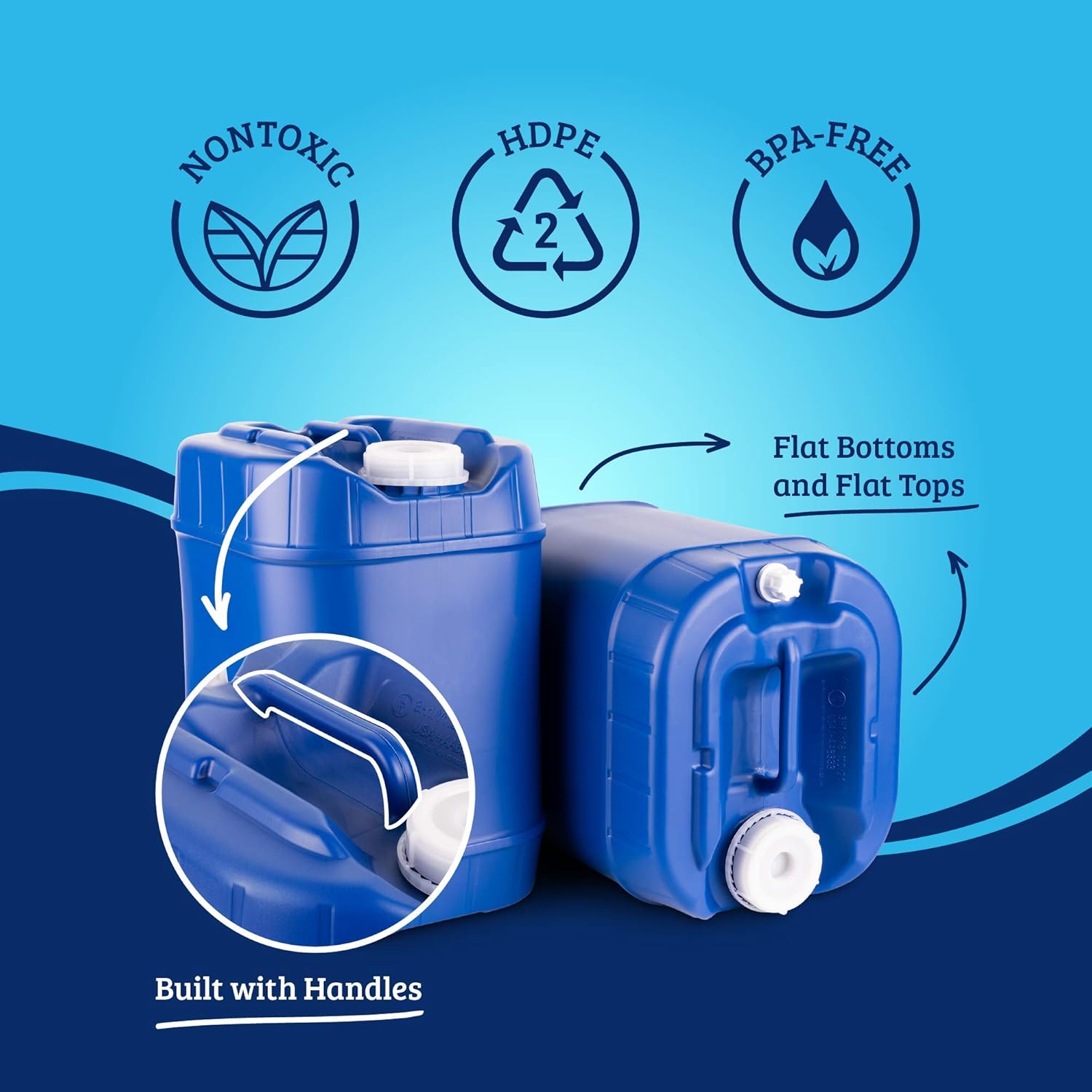 5-Gallon Stackable Water Storage Containers with Lids, Emergency Water Storage Kit Including Spigots and Water Preserver Bottles, 100 Gallons