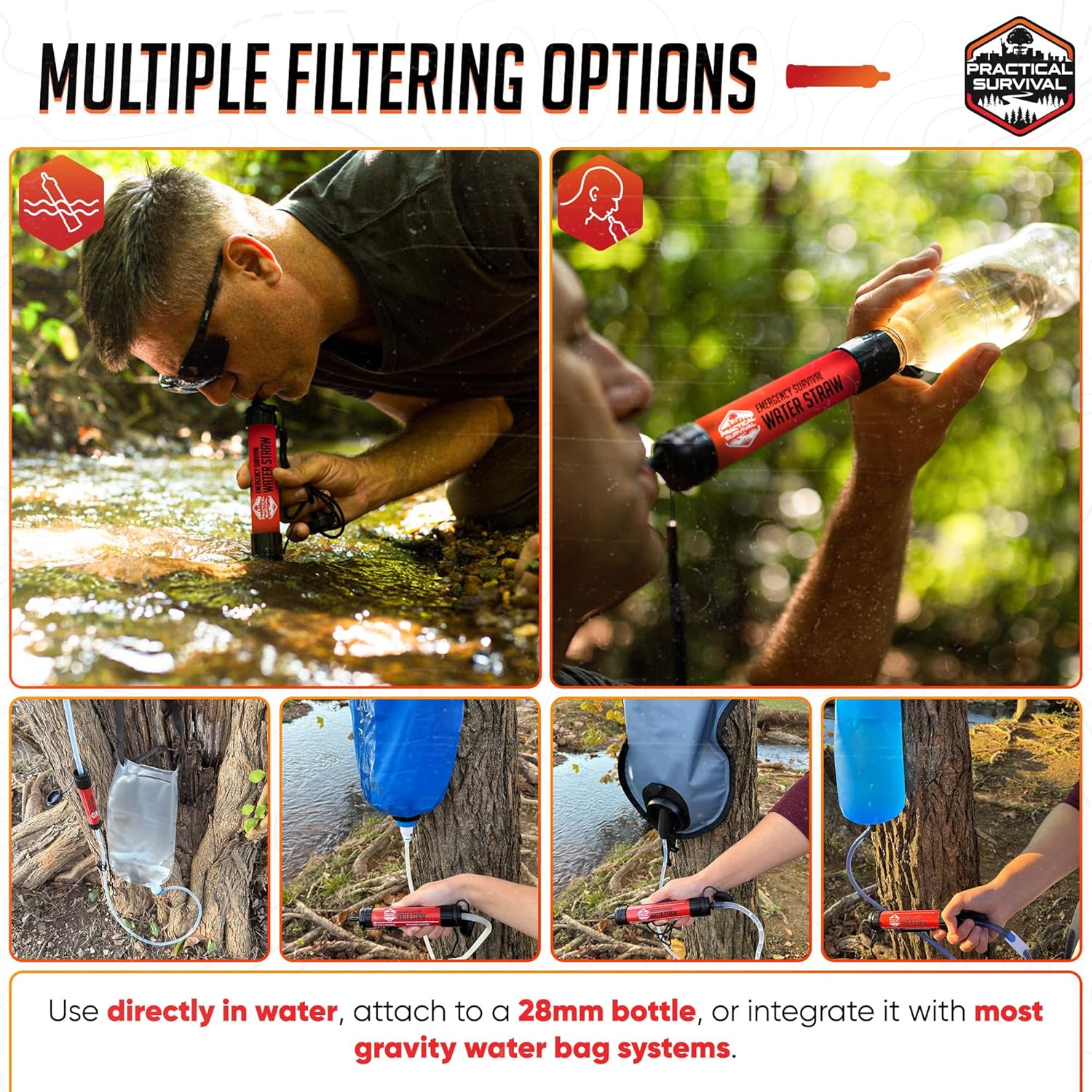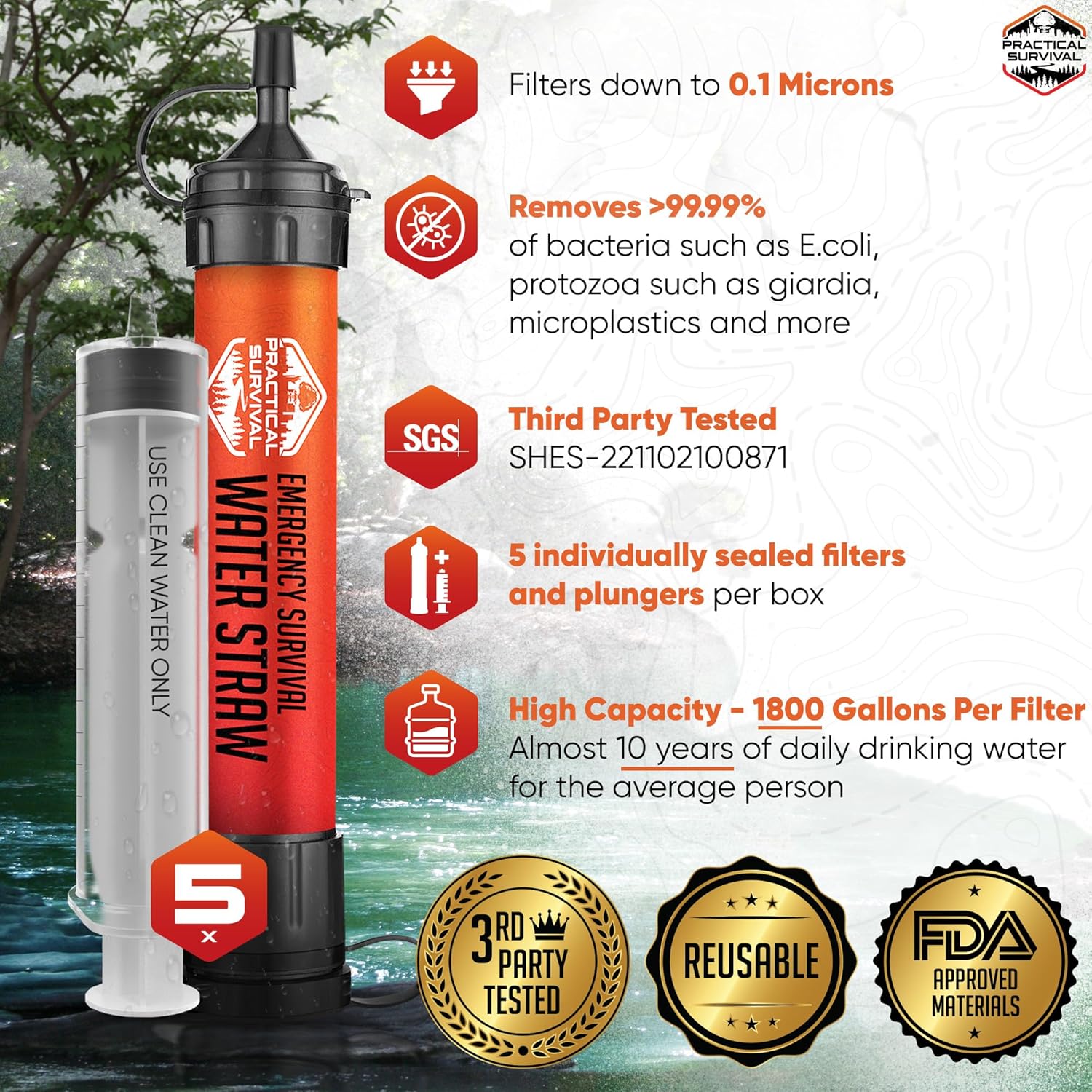 5 High-Capacity Emergency Water Straws – Lightweight, Reusable, 1800-gallon Filters for Camping, Hiking, Travel, Biking, Survival, and Emergency Preparedness – No Expiration Date – Practical Survival