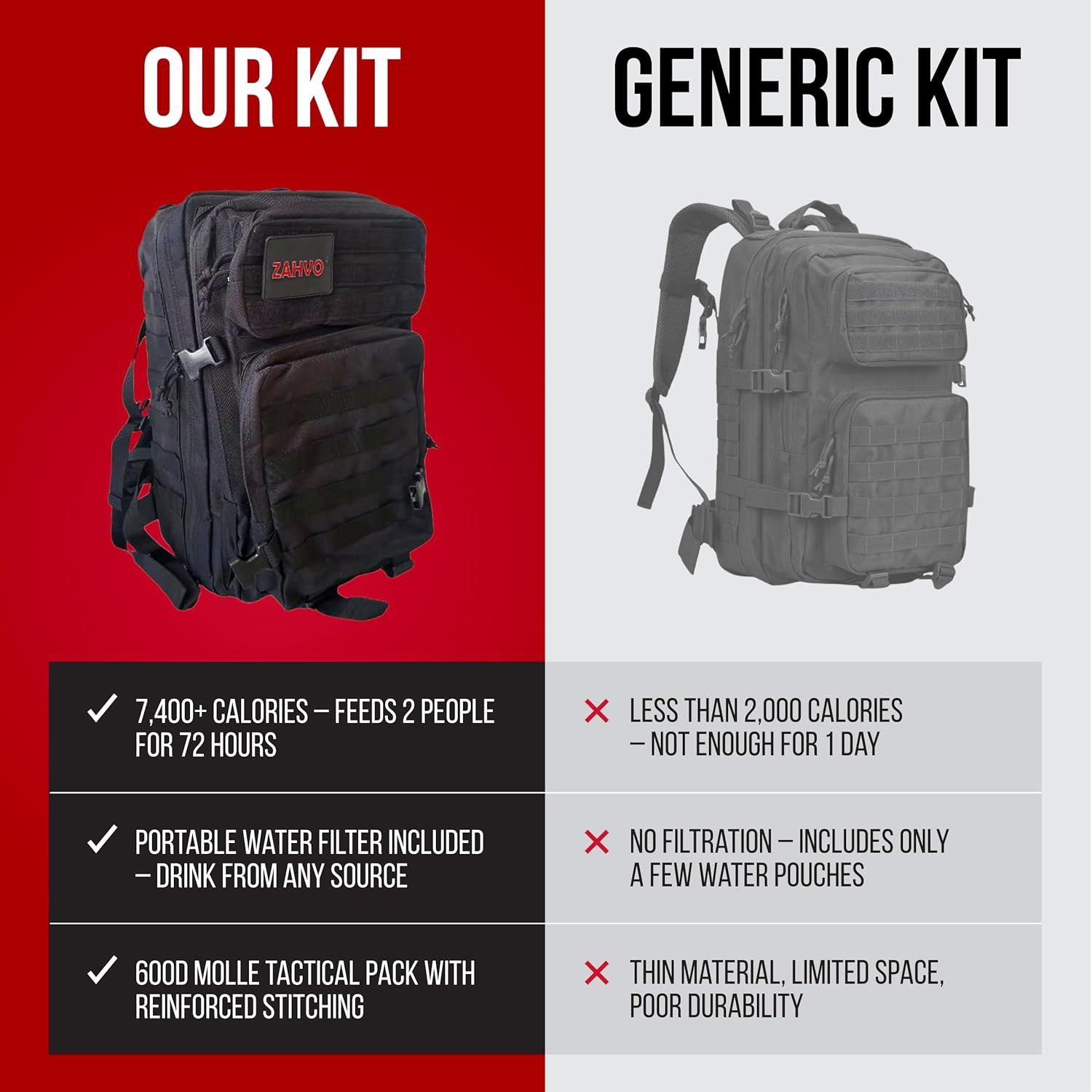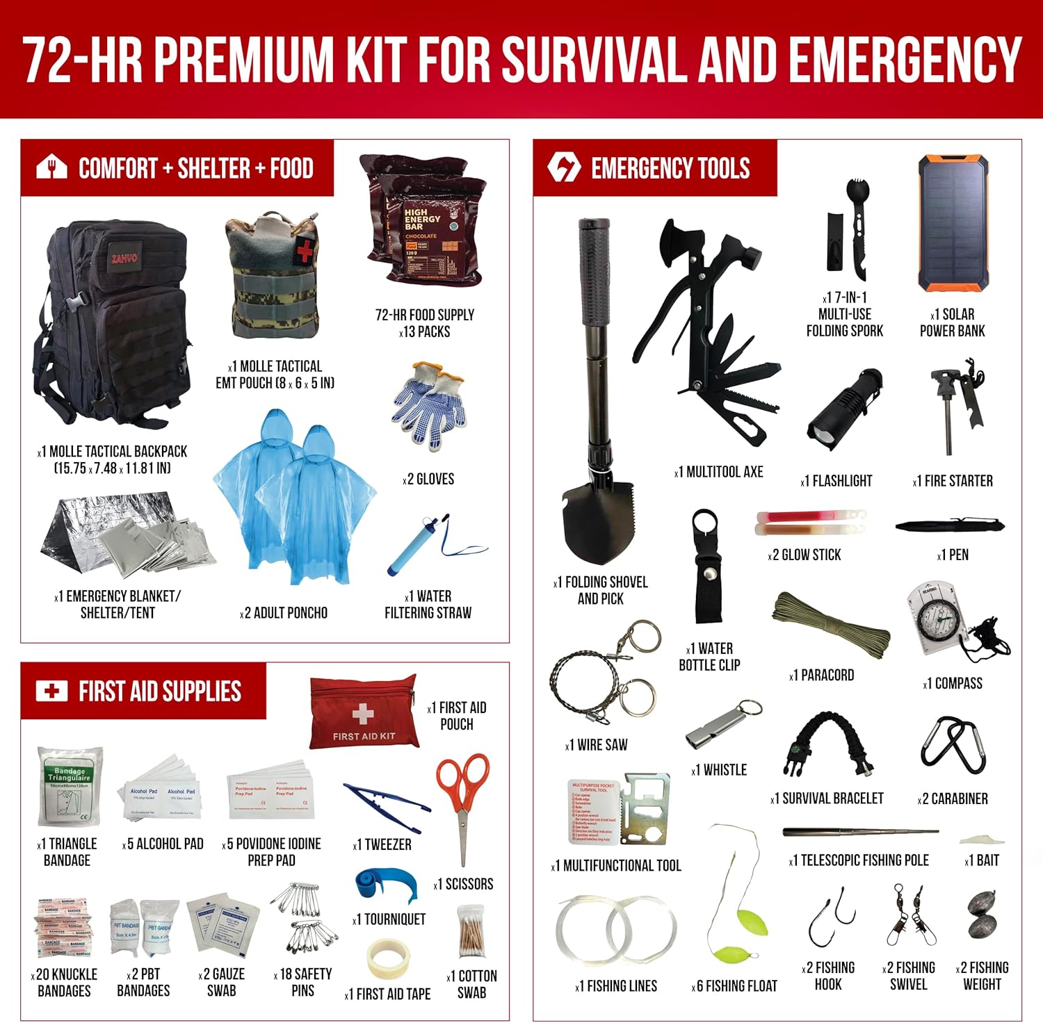 • Comprehensive survival gear for emergencies