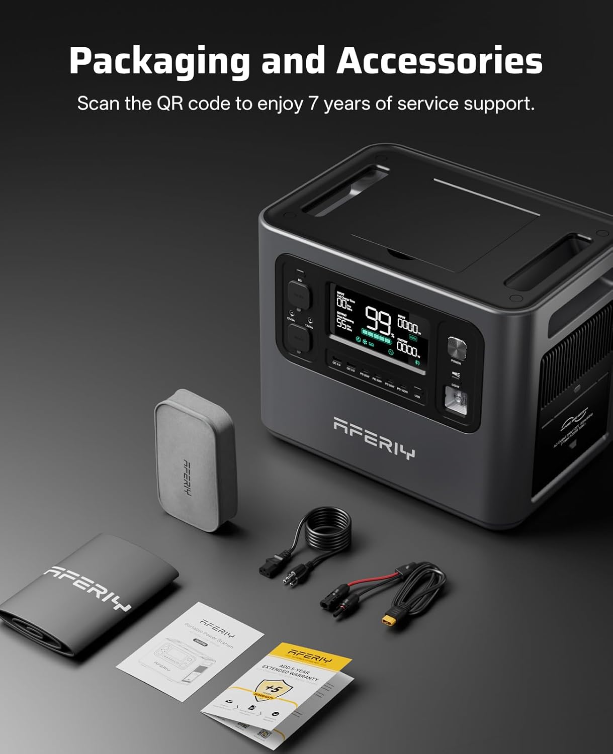 AFERIY 2048Wh Portable Power Station 2400W (Peak 4800W),P210 LiFePO4 Battery Generator,AC Fast Charging, 12V/25A XT60 DC output port,UPS Power Outages,Home Backup,Camping(Solar Panel Optional)