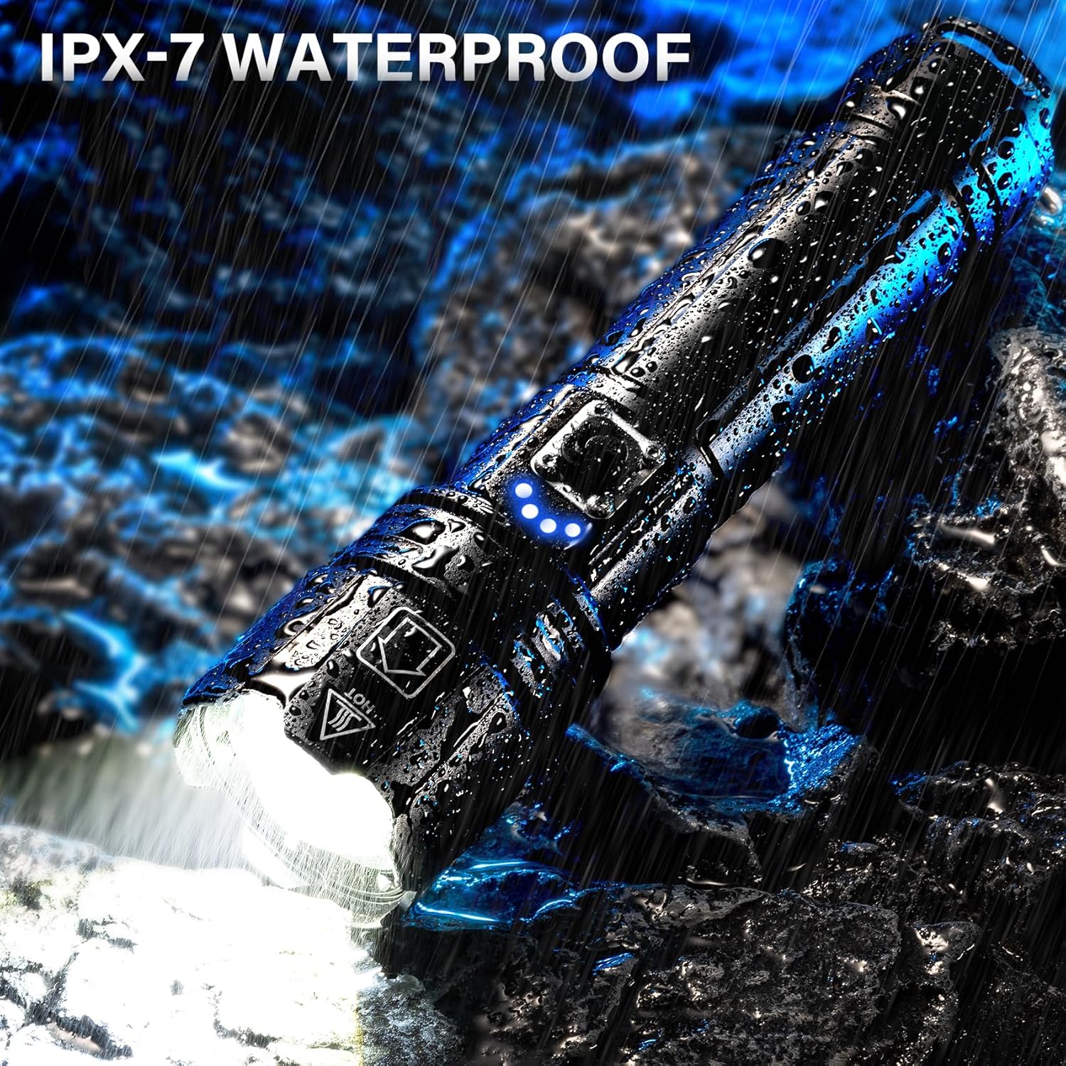 Additionally, the flashlight is USB-C rechargeable, ensuring convenience and efficiency. Its IPX7 waterproof rating means it can withstand splashes and brief immersion in water, making it suitable for outdoor conditions.