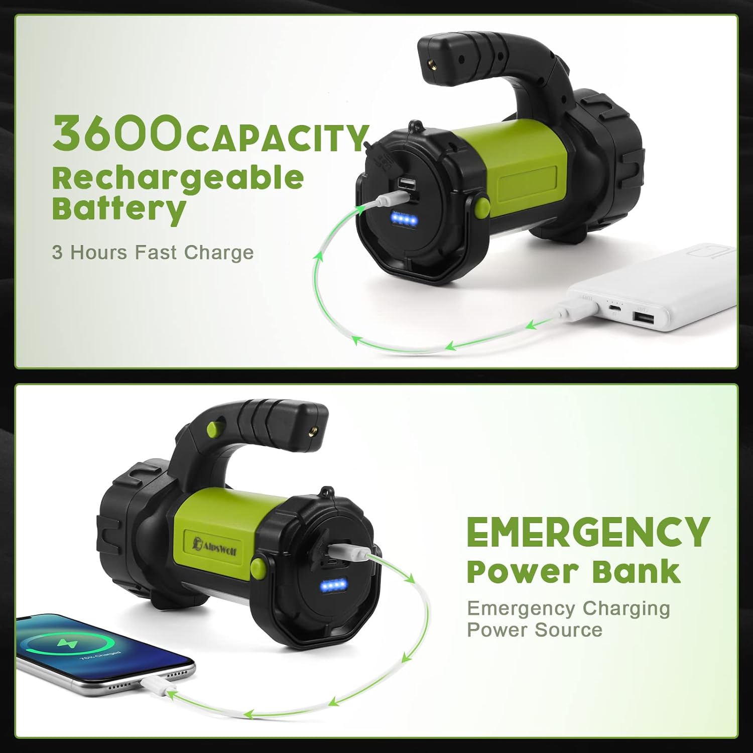AlpsWolf Camping Lantern Rechargeable, LED Flashlight Spotlight Lantern with 800LM, 3600 mAh, Strap Included Portable Bright Camping Light for Emergency, Outdoor Hiking, Power Outages