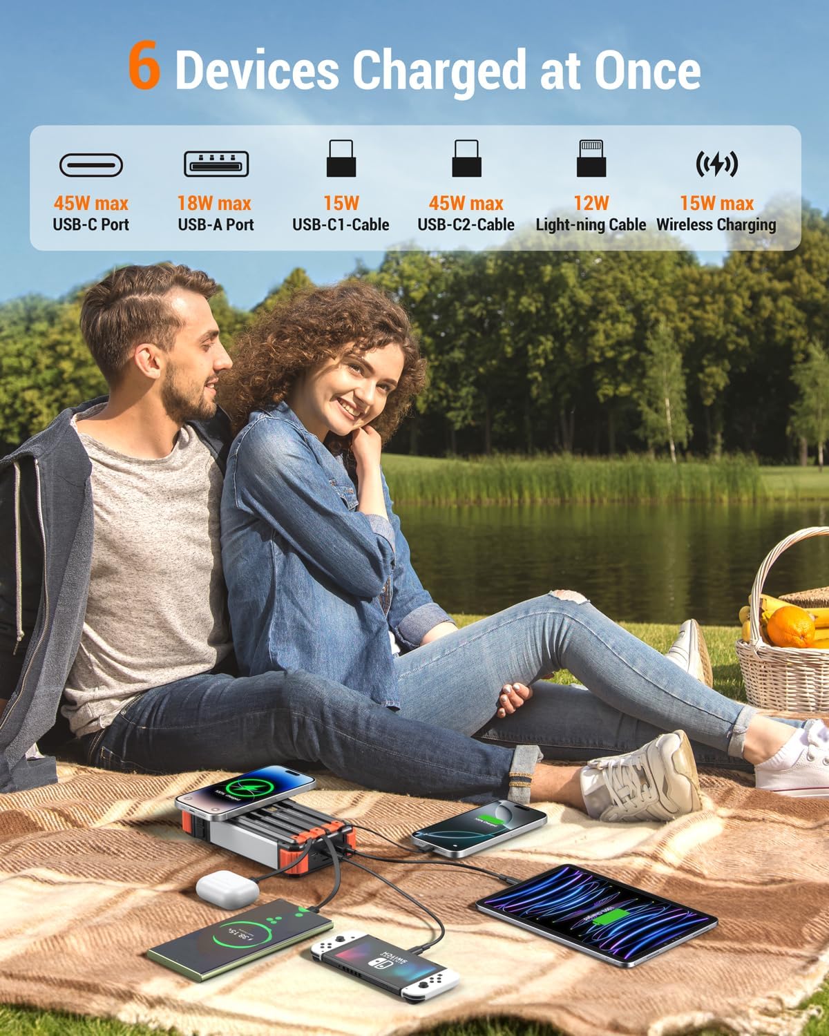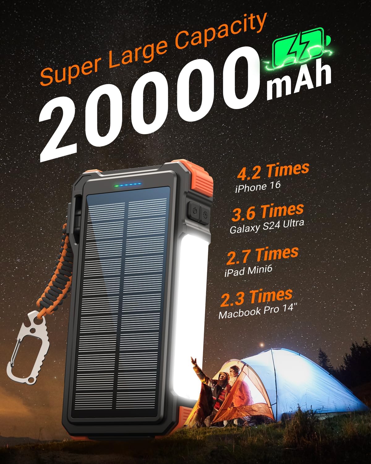 - 20000mAh capacity for multiple charges