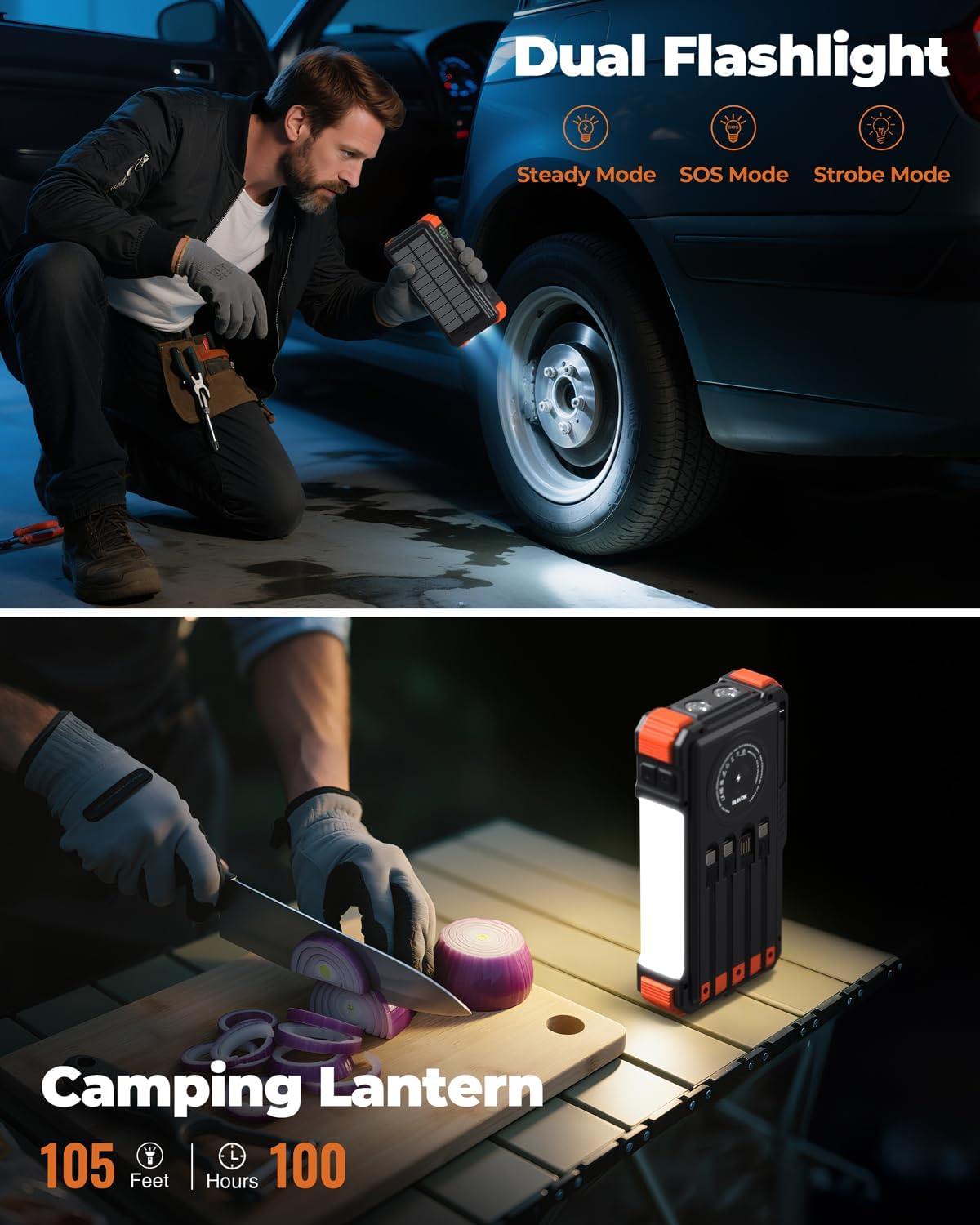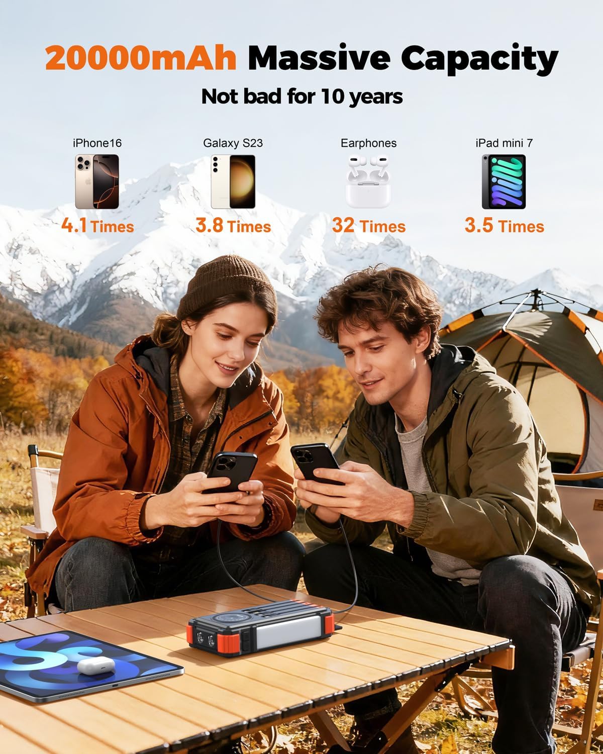 BLAVOR Solar Power Bank with Hand Crank and 4 Cables, 20000mAh Wireless Portable Charger with USB C & Camping Light, 20W Fast Charging Battery Pack for iPhone, iPad, Samsung, All Mobile Phones
