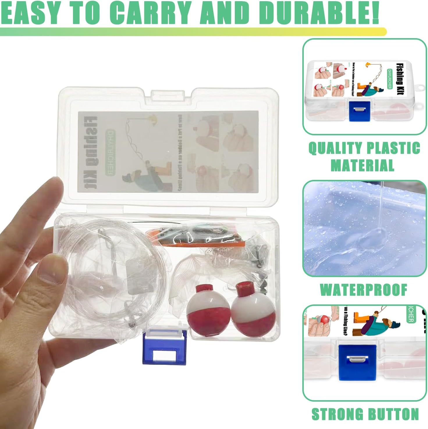 The Compact Mini Fishing Kits are essential for anyone who enjoys outdoor activities or needs a reliable survival tool. Each kit includes a variety of fishing essentials, such as scissors, a 33 ft fishing line, bobbers, hooks, sinkers, a leader, and flies, all neatly packed in a sturdy container. Measuring approximately 3.86 x 2.68 x 1.3 inches, these kits are lightweight and portable, making them perfect for hiking, camping, or emergency situations.