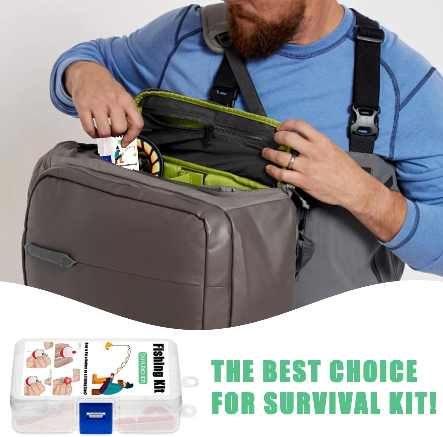 Includes essential tools for survival and outdoor fishing adventures.