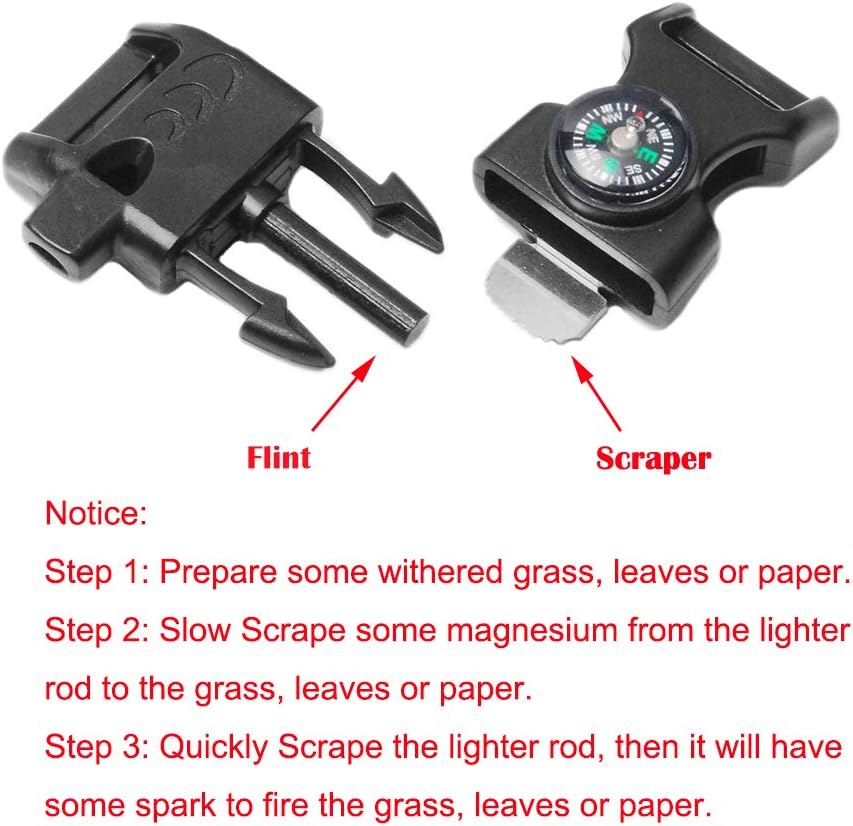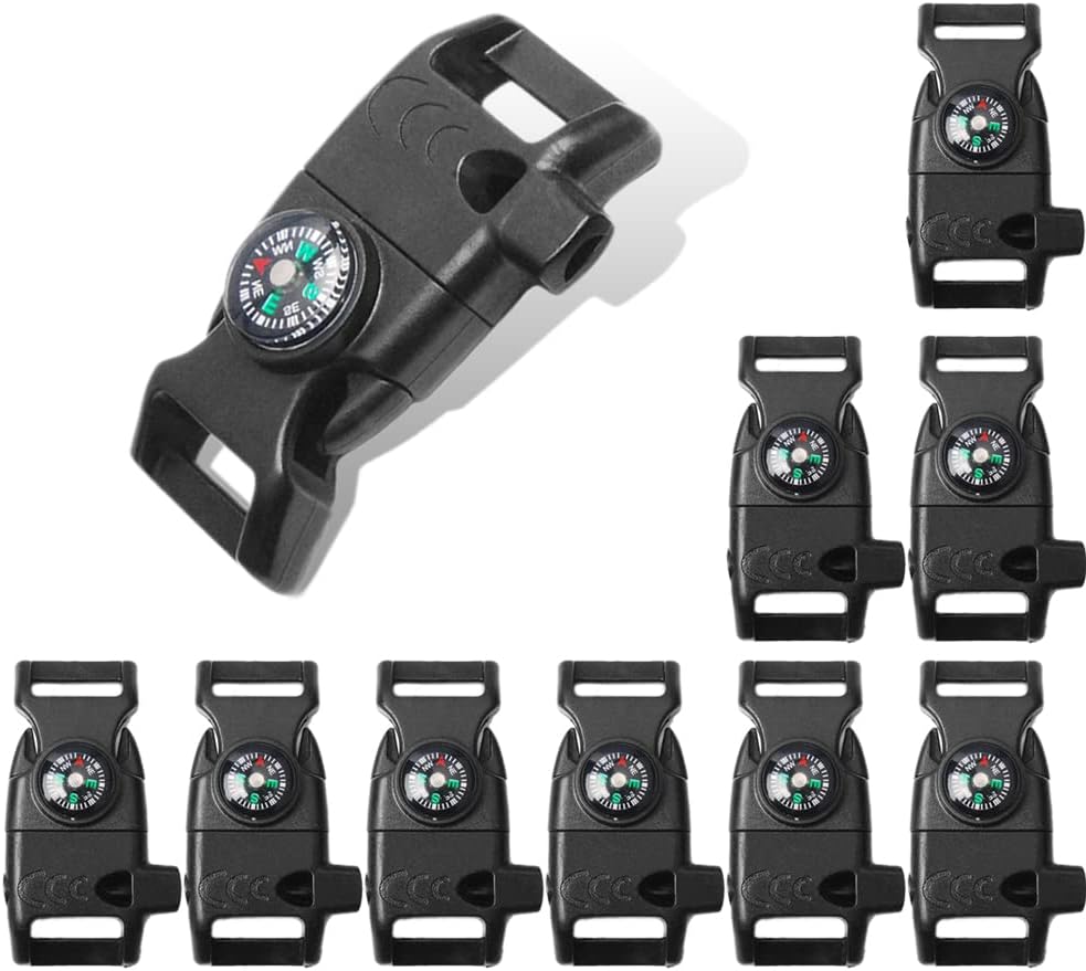 The CooBigo 5/8" Compass Whistle Buckle Plastic Paracord Bracelet is an essential tool for outdoor enthusiasts and survivalists. This versatile paracord buckle is perfect for a variety of applications, including: