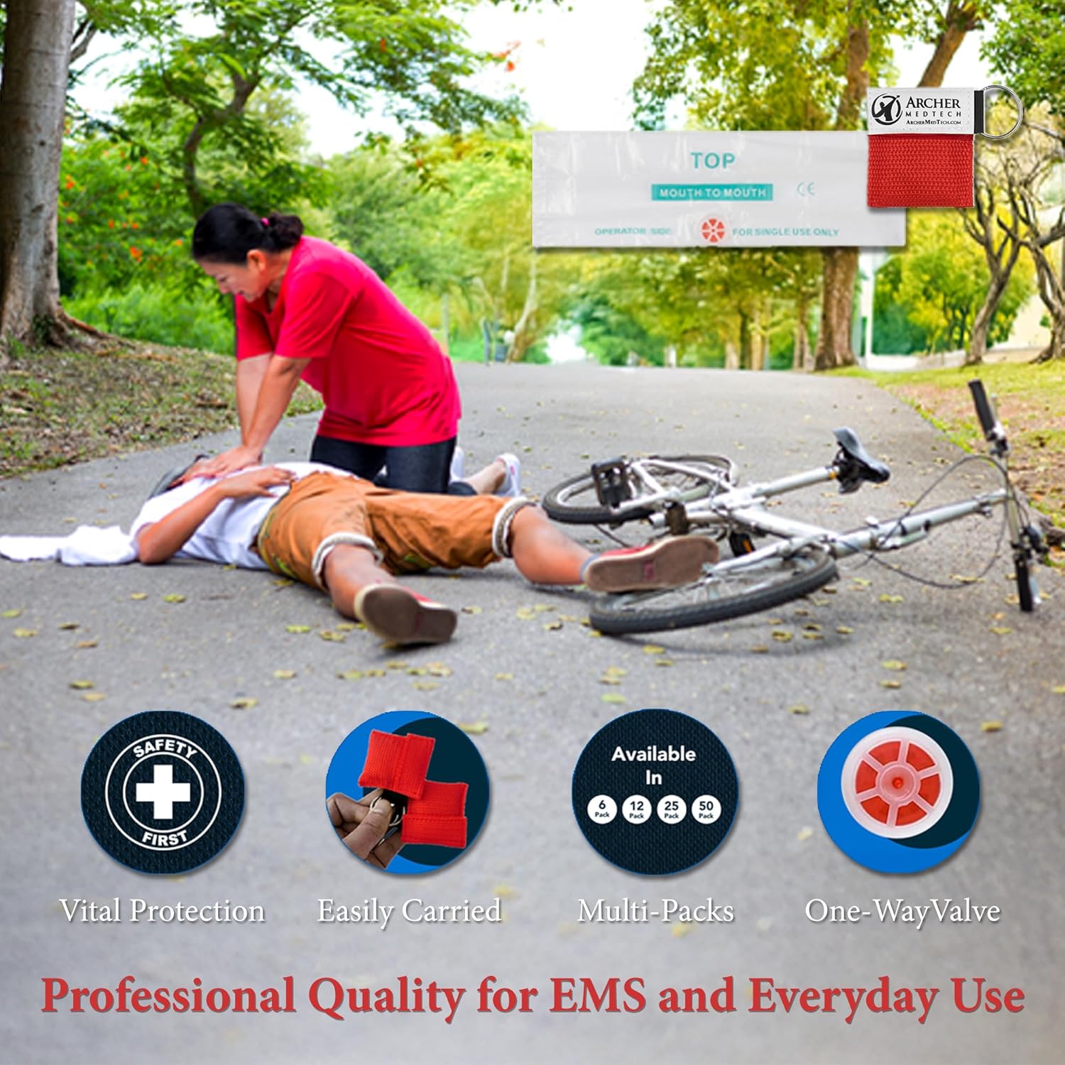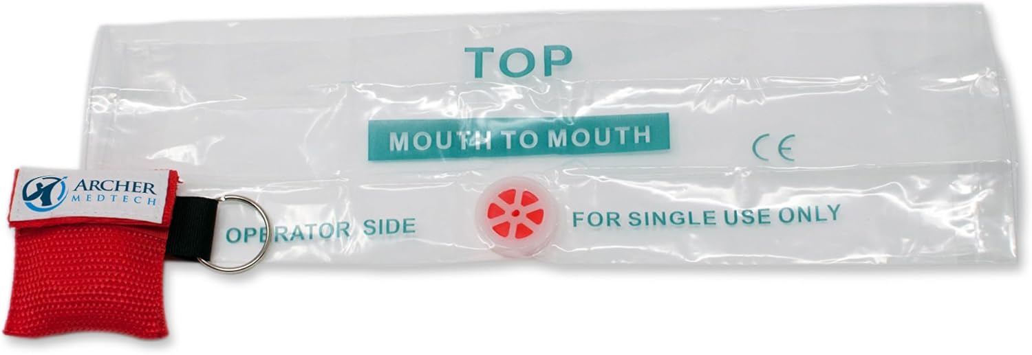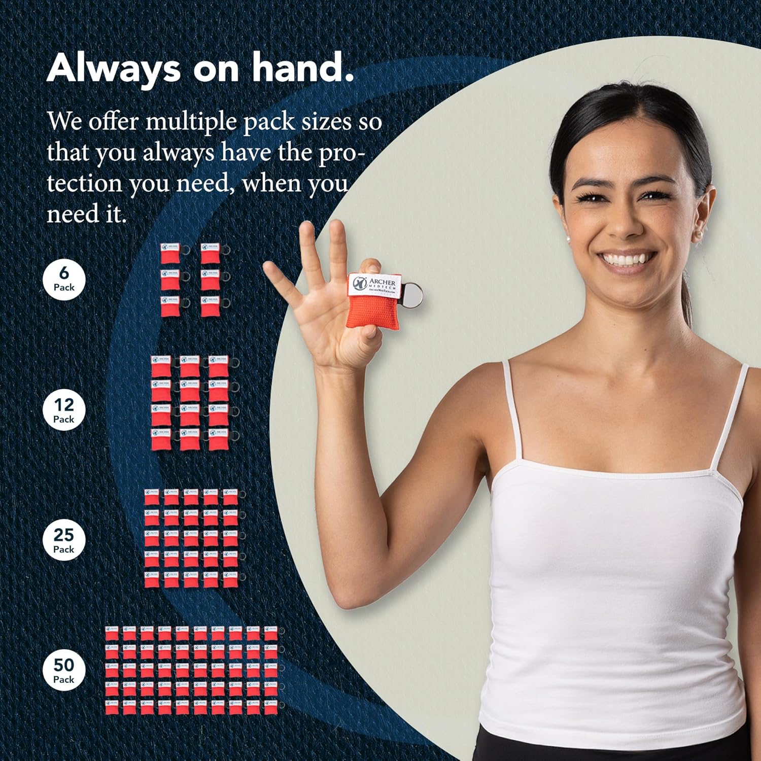 CPR Mask for Pocket or Key Chain, CPR Emergency Face Shield with One-Way Valve Breathing Barrier for First Aid or AED Training, Archer MedTech (6)