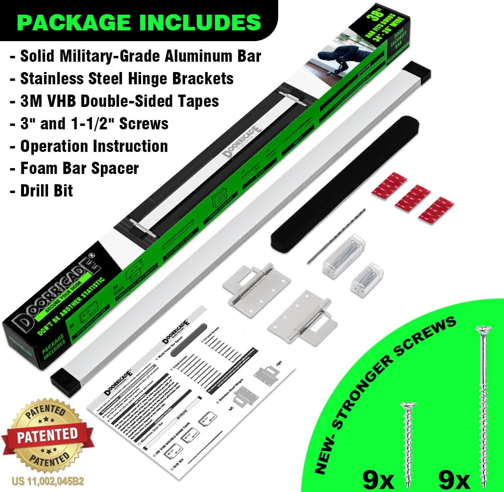 Door Security Bar-by Doorricade-Secure The Entire Width of Your Inward Opening Front Door or Safe Room. fits Doors up to 32″ Wide.