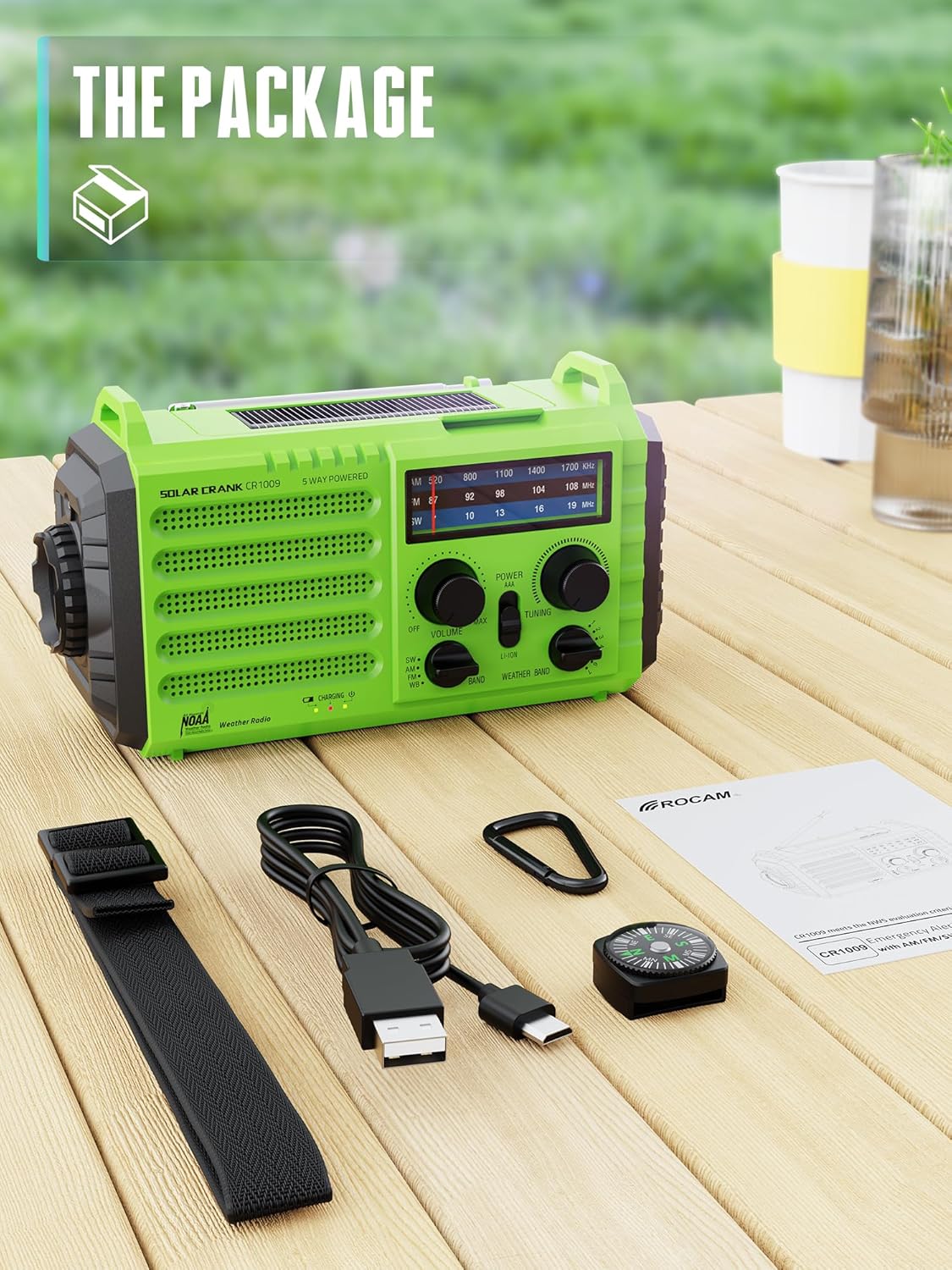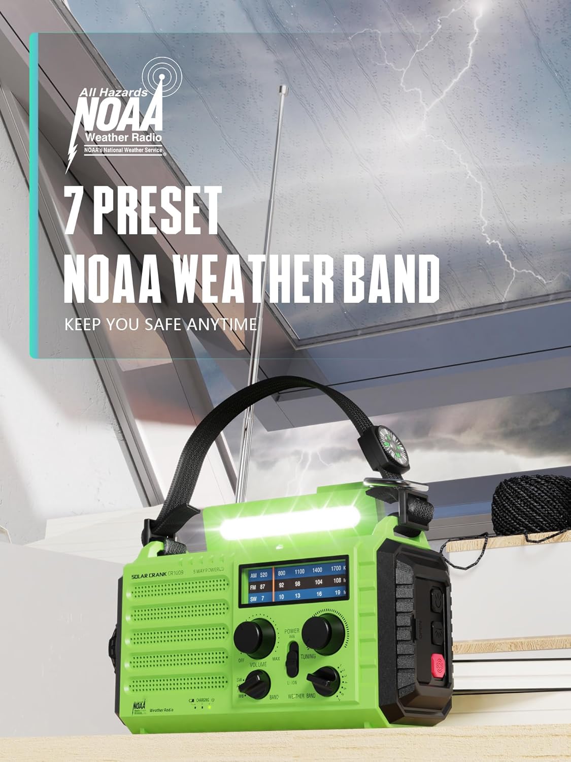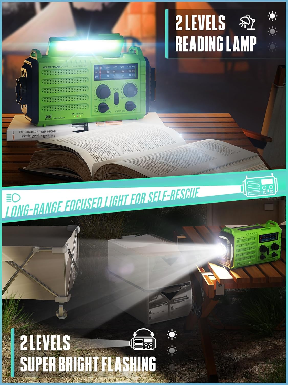 The Emergency Radio with NOAA Weather Alert is designed for both home and outdoor use, providing essential information during emergencies. With a solar hand crank feature, this portable AM/FM shortwave radio ensures you stay connected even when the power is out. The built-in 5000mAh rechargeable battery allows for extended use, while the USB charger adds convenience. Additionally, this radio includes a flashlight and an SOS alarm, making it a versatile tool for survival situations.