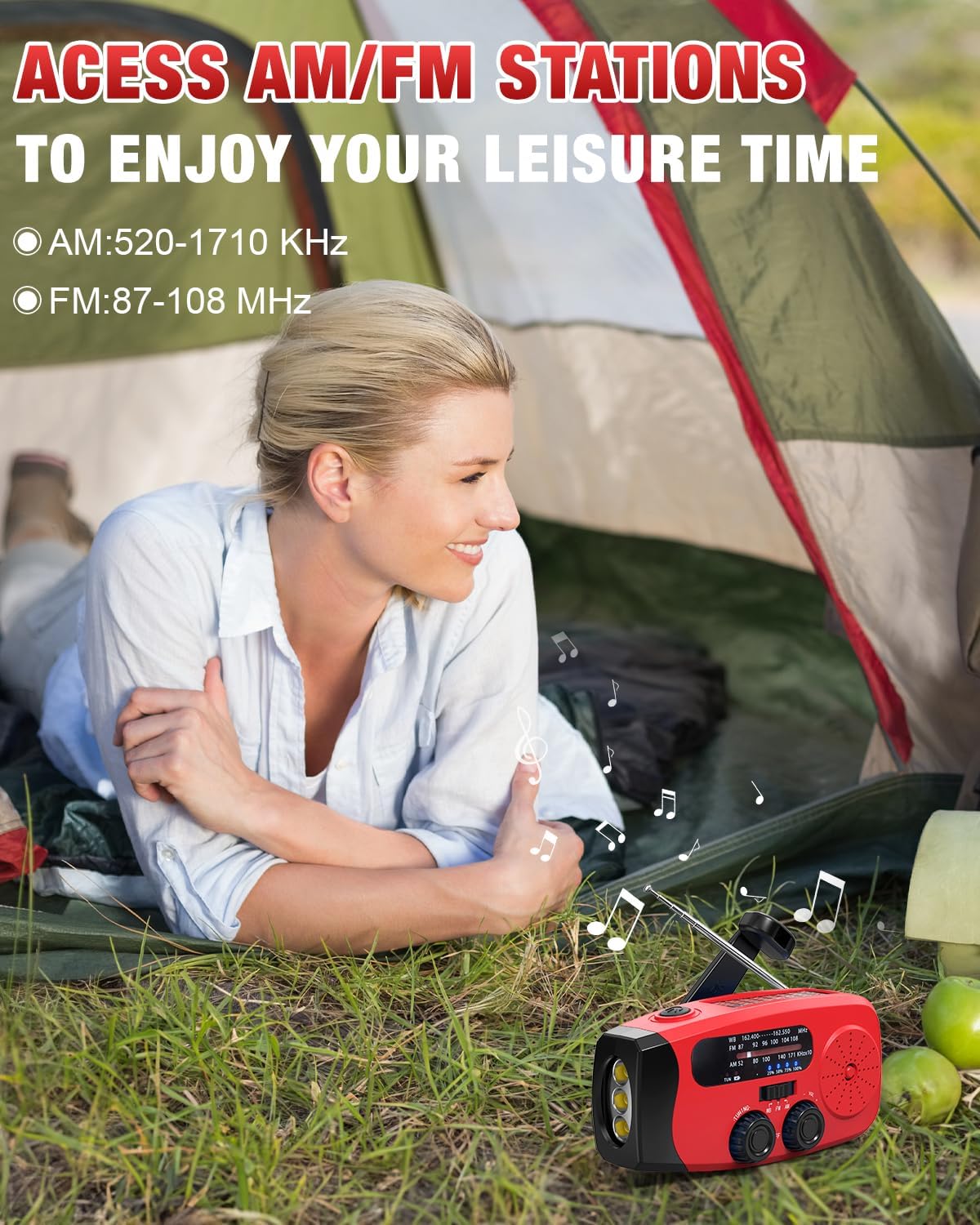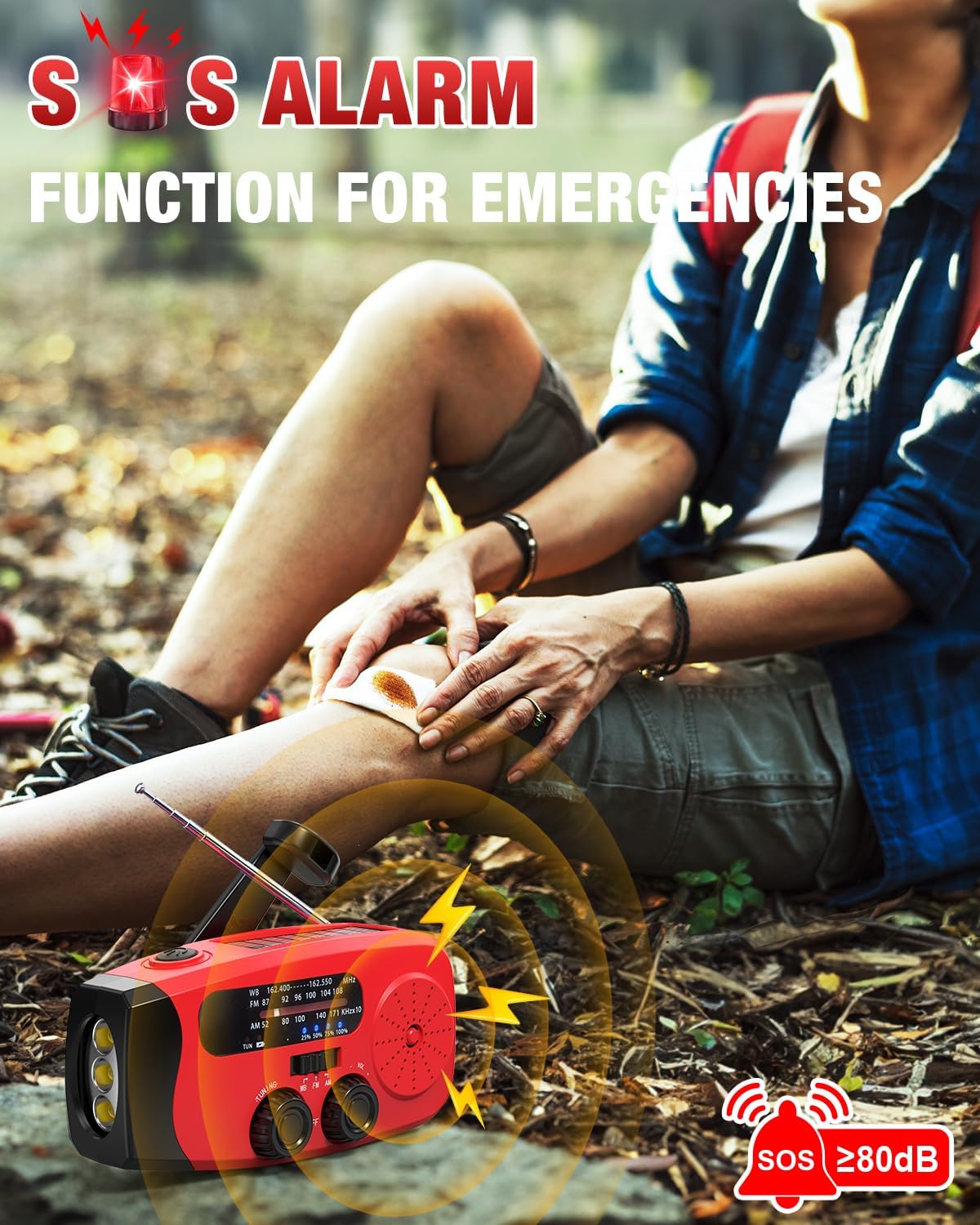 - Multiple power options (solar, hand crank)