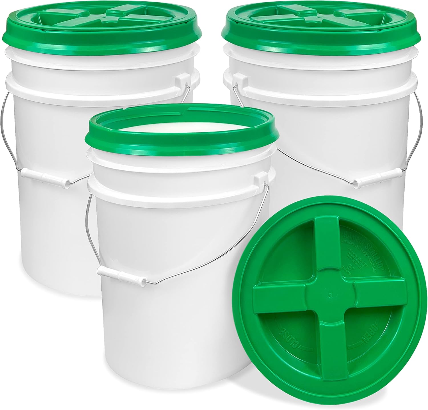ePackageSupply 5 Gallon Bucket – Food Grade Bucket with Airtight Gamma Seal Screw-On Lid, BPA-Free, Heavy-Duty 90 Mil HDPE Plastic, Bulk Storage, Durable Container, Made in USA, White/Green, 3 Packs