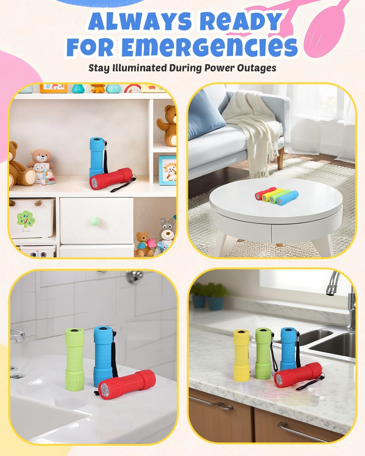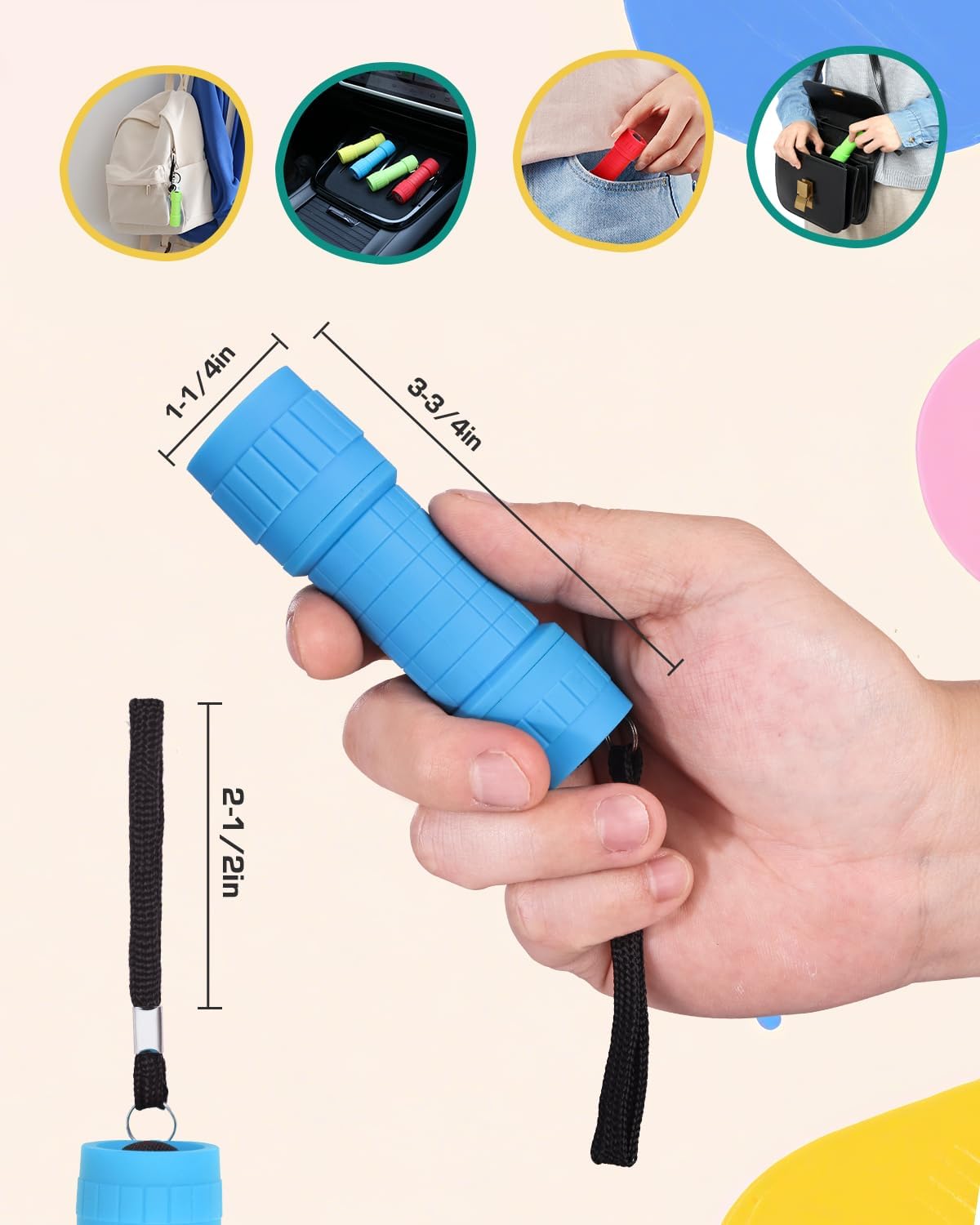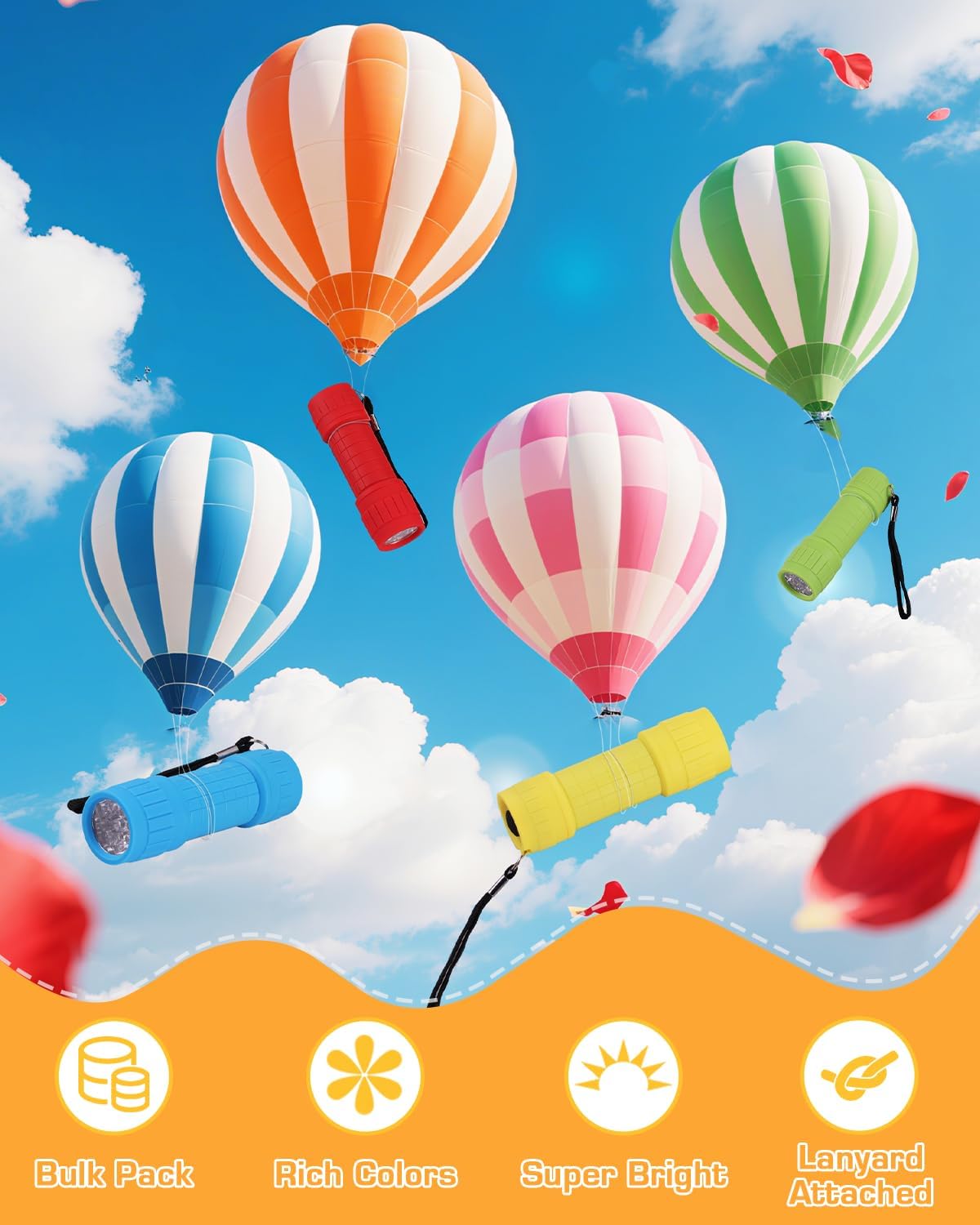 - 16 mini LED flashlights in assorted colors