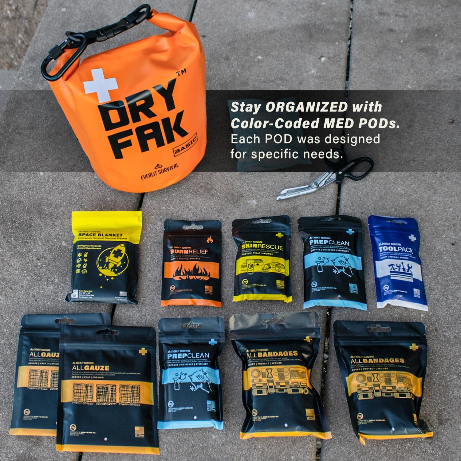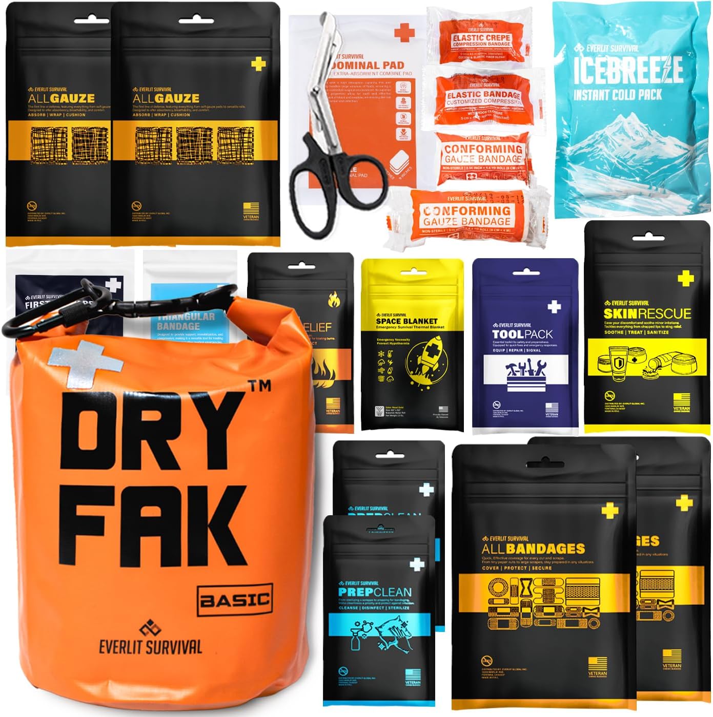 EVERLIT 290 Pc Waterproof First Aid Kit Dry FAK Medical Kit Emergency Survival Kit for Boat, Backpacking, Hiking, Fishing, Travel, Kayaking (Orange) (Orange)