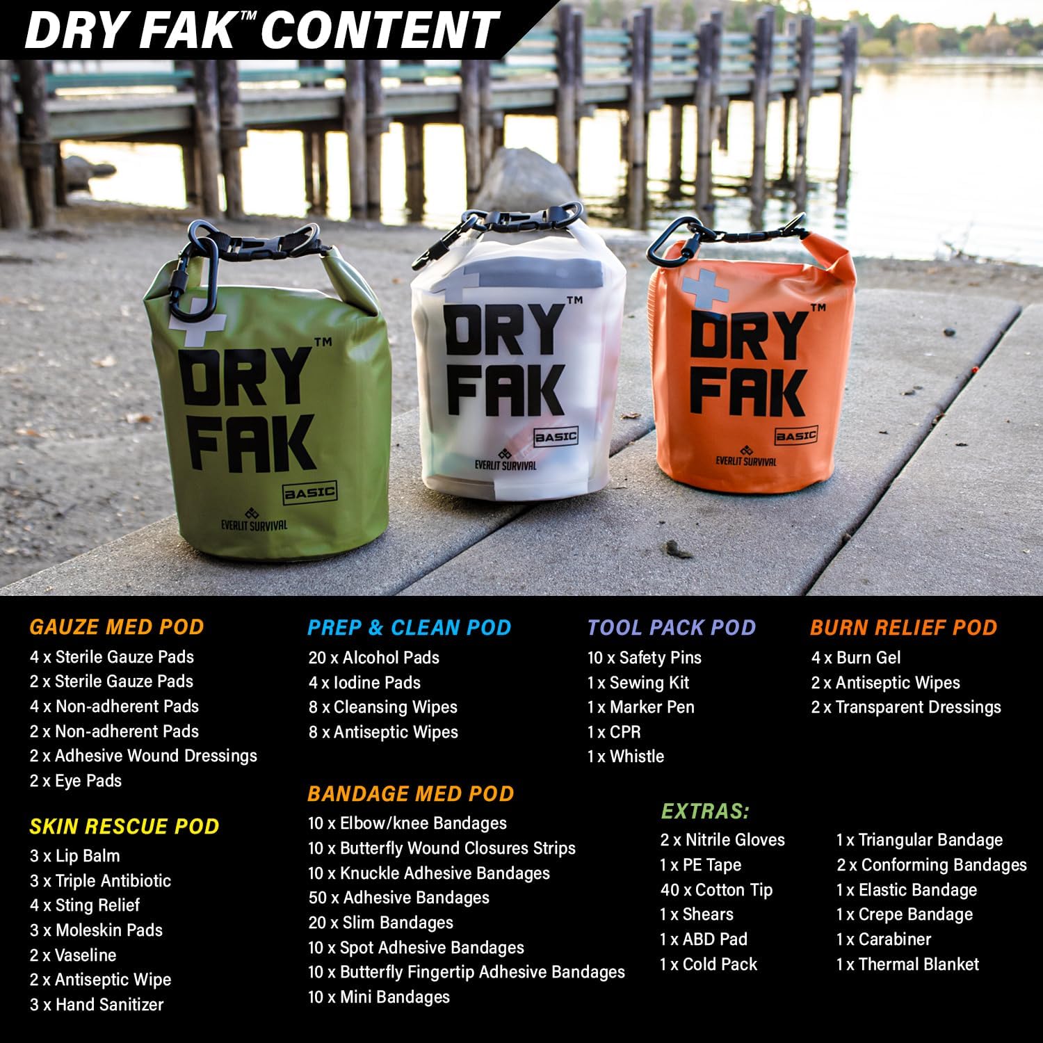 What is included in the EVERLIT 290 Pc Waterproof First Aid Kit?
