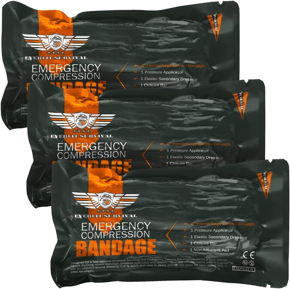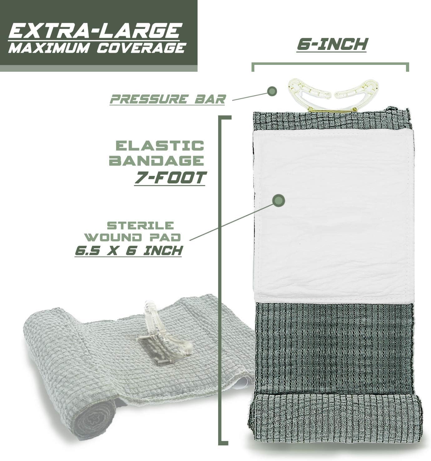EVERLIT Israeli 6 Inch Emergency Bandage Compression Trauma Pressure Wound Dressing Sterile Vacuum-Sealed Packaging for Bleeding Control, Medical Trauma Kit, Gun Shot, First Aid IFAK