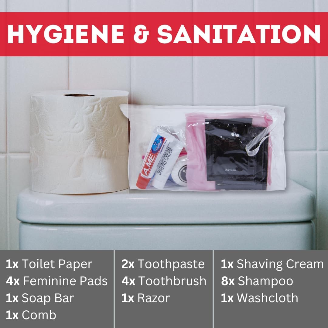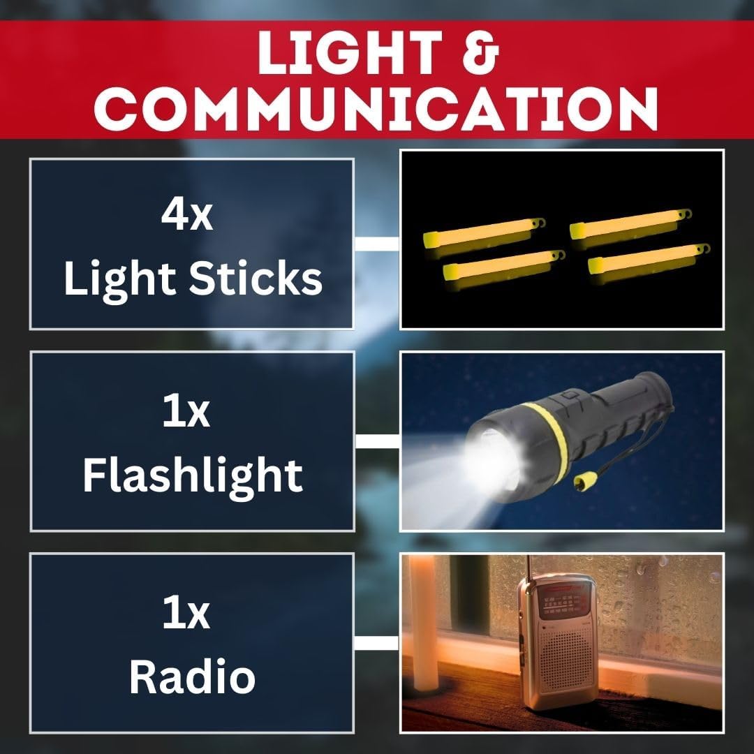 - Includes long-lasting food and water supplies