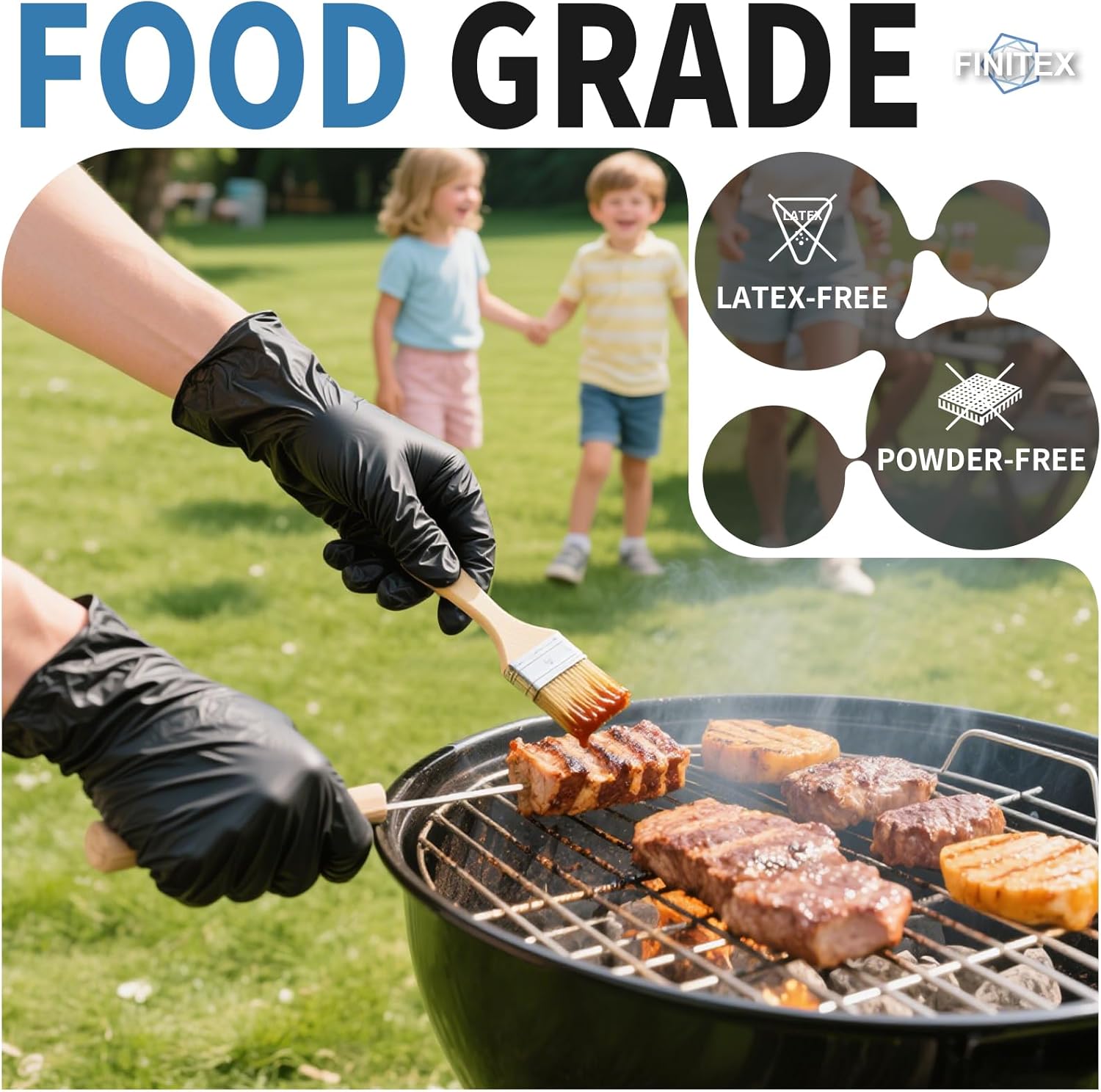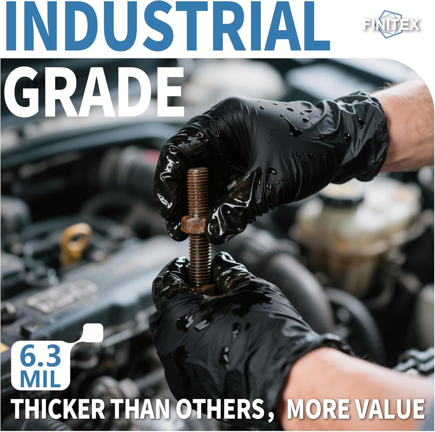 FINITEX Black Nitrile Disposable Medical Exam Gloves – 100/1000 PCS 6.3mil Powder-Free Latex-Free Food Gloves