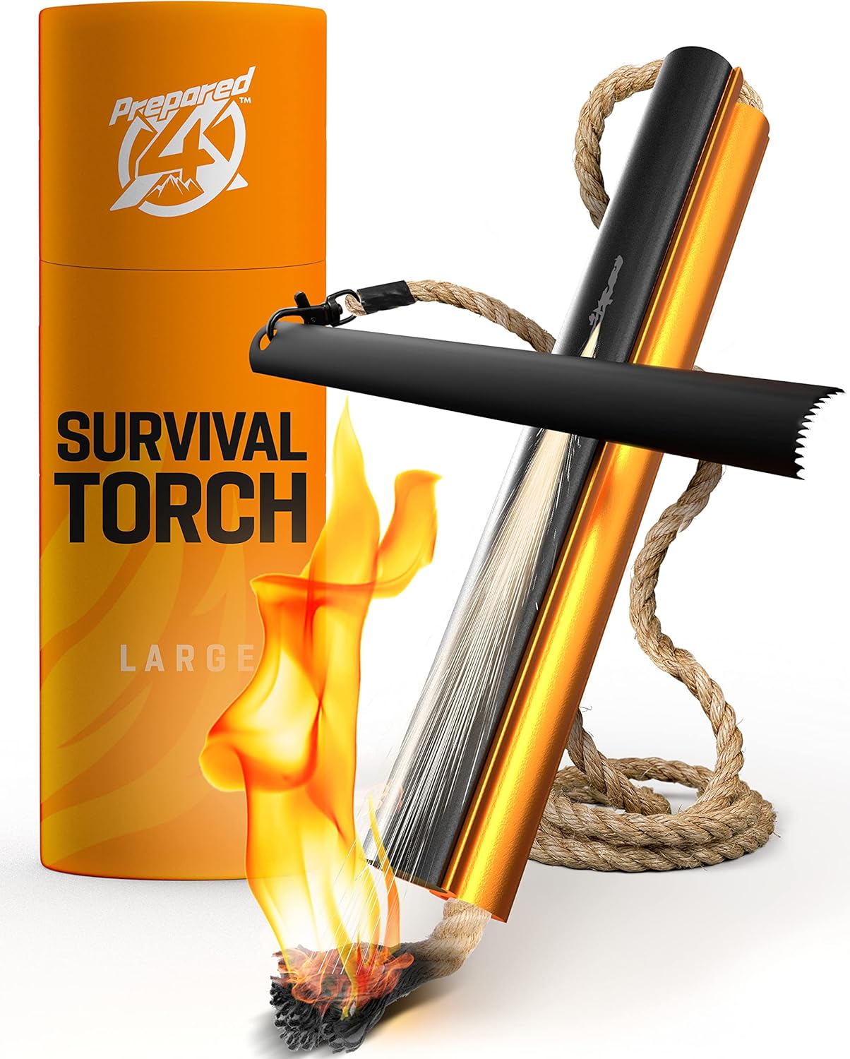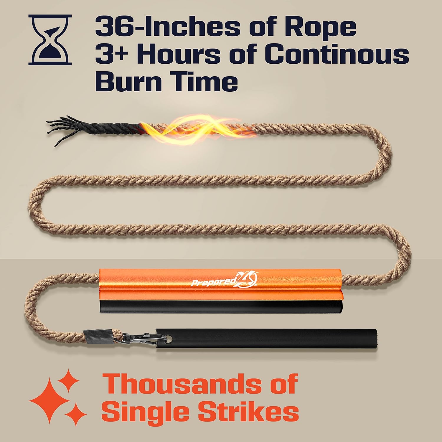 Fire Starter Survival Tool – All-in-One Flint and Steel Fire Starter Kit – Ferro Rod Fire Starter with 36″ Waterproof Tinder Wick Rope and Steel Fire Striker – Patented Firestarter | Prepared4X