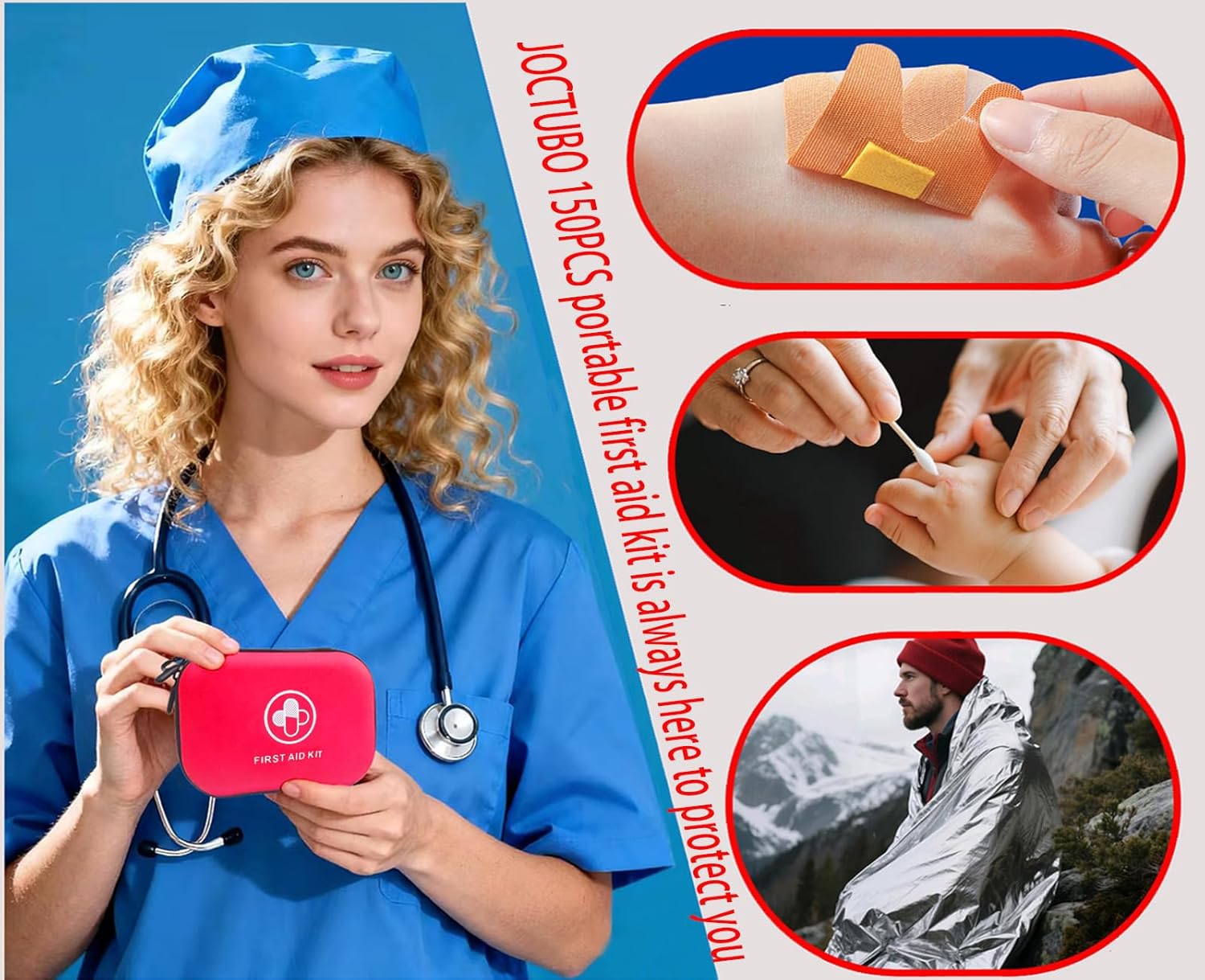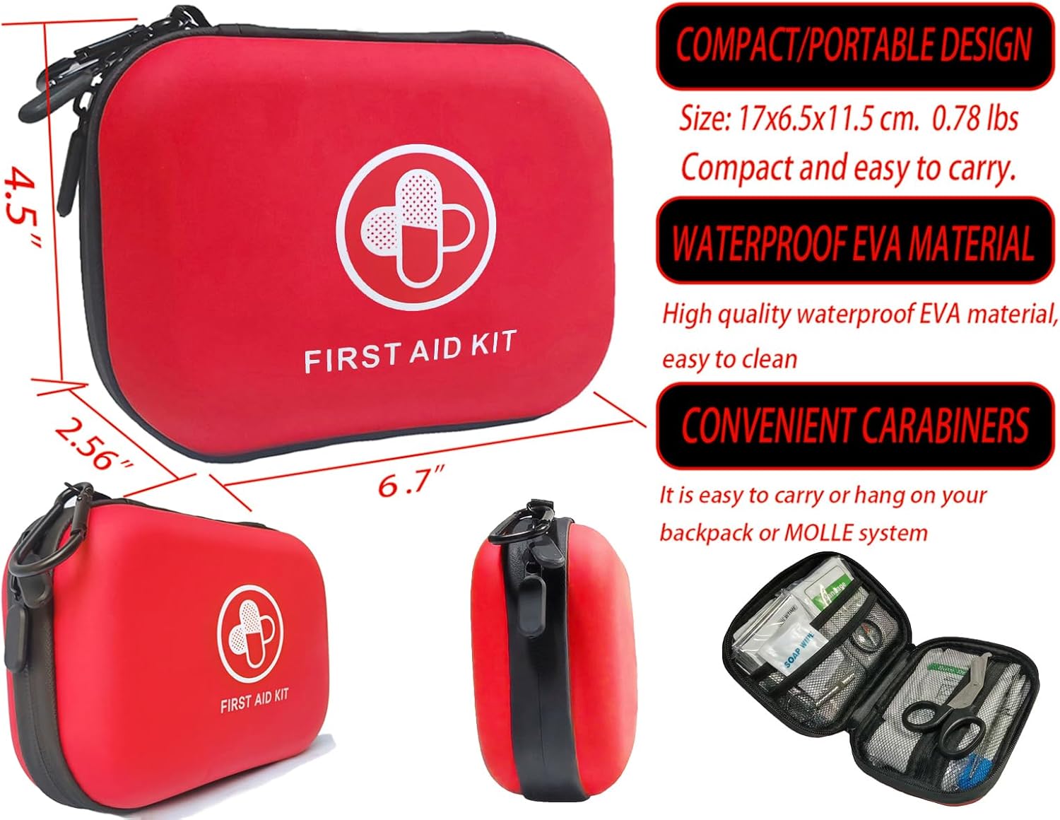 First Aid Kit 150 Piece Waterproof Hard Shell Emergency Medical Kit for Home, Camping, Hiking, Sports, Office, Adventure Portable IFAK Kits (Red)