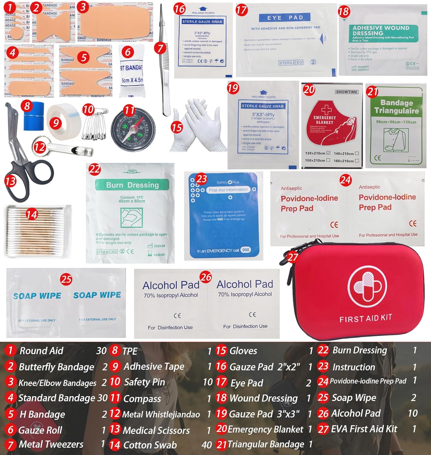 This kit is suitable for home, camping, hiking, sports, office, and other adventure scenarios.