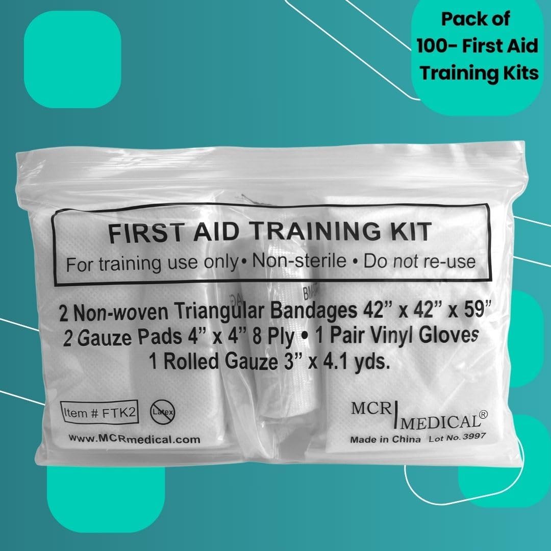 First Aid Training Kit w/Roller Gauze w. Gauze Pads and Triangular Bandages and Gloves 10-Pack MCR Medical