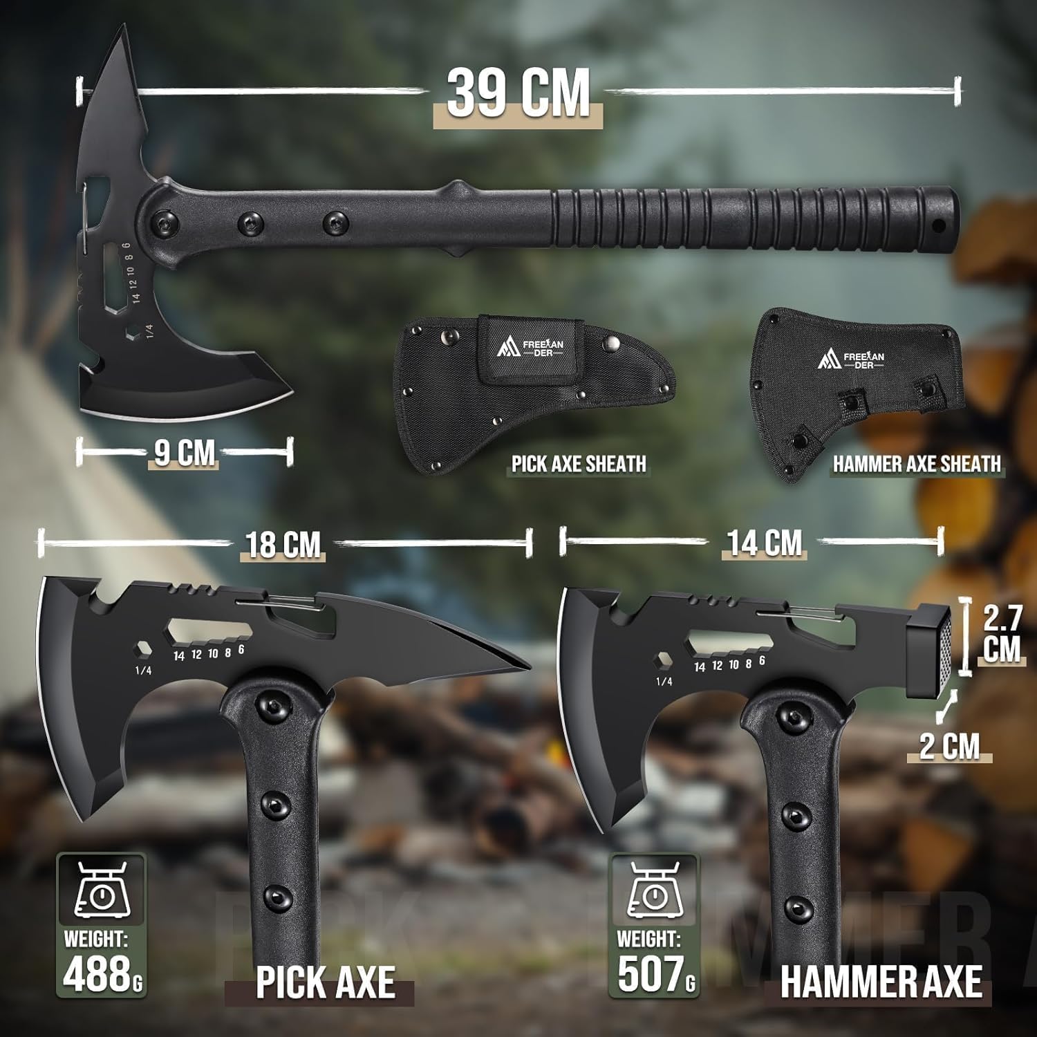 The Freelander Tactical Axe 2 Pack is designed for outdoor enthusiasts and survivalists alike. These sharp tomahawks come with a sheath for safe storage and a clip for easy attachment to your gear. The durable construction features a tough reinforced handle, ensuring resilience during heavy use. Ideal for hiking and camping, these axes also include a bottle opener, adding to their versatility.