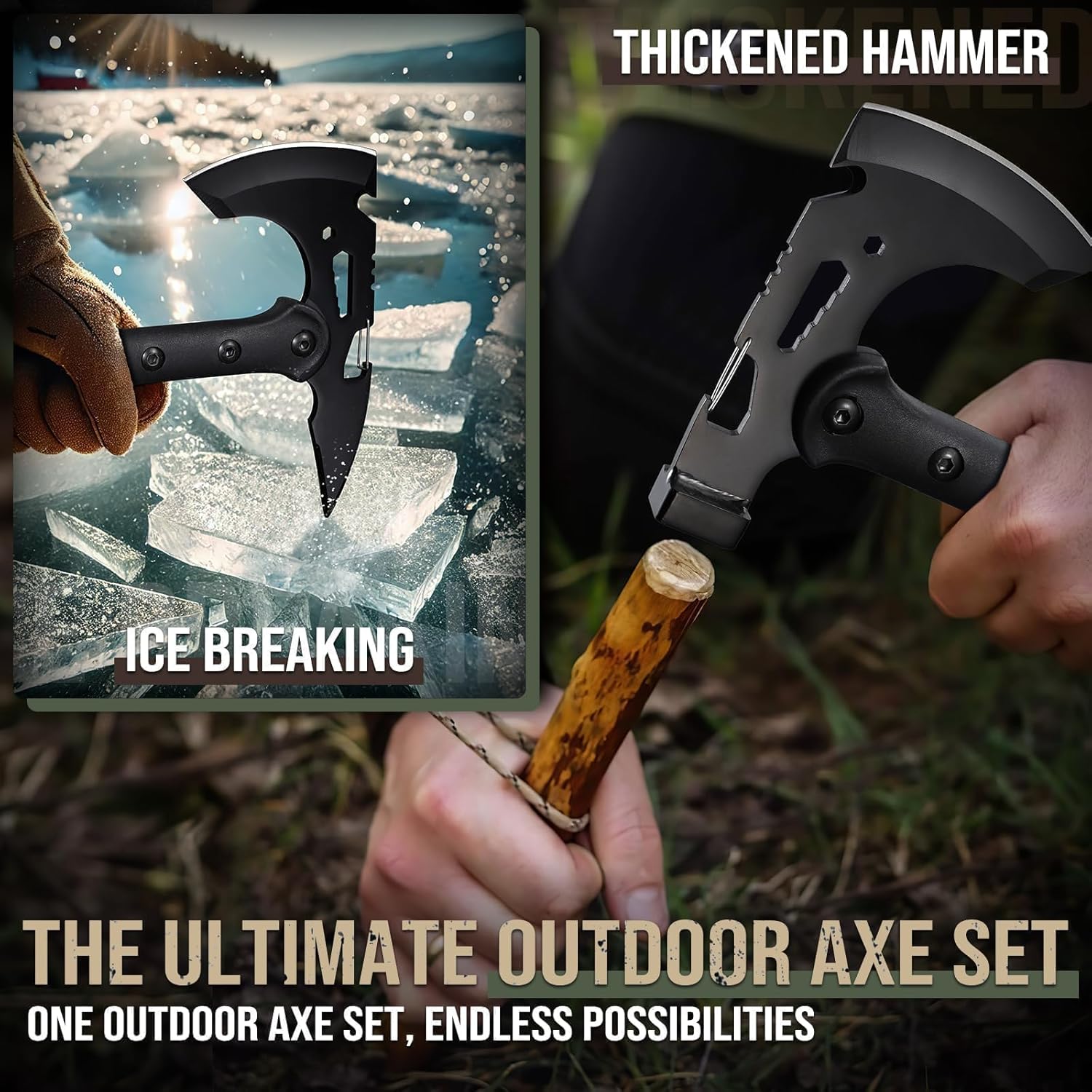 Freelander Tactical Axe 2 Pack, Sharp Tomahawk with Sheath, Portable Tomahawk with Clip and Bottle Opener, Durable Survival Hatchet for Emergency, Hiking and Camping, for Men Women