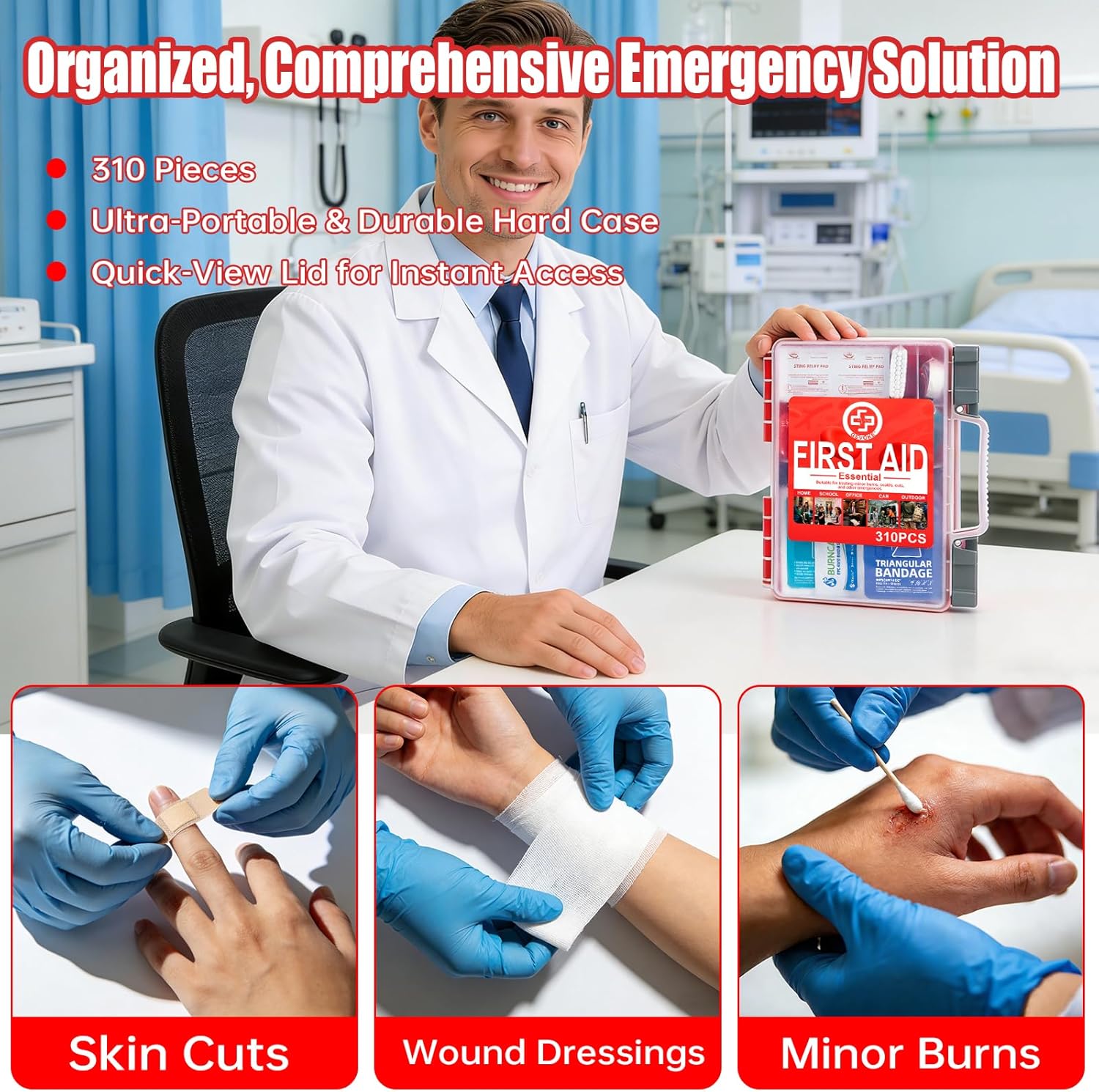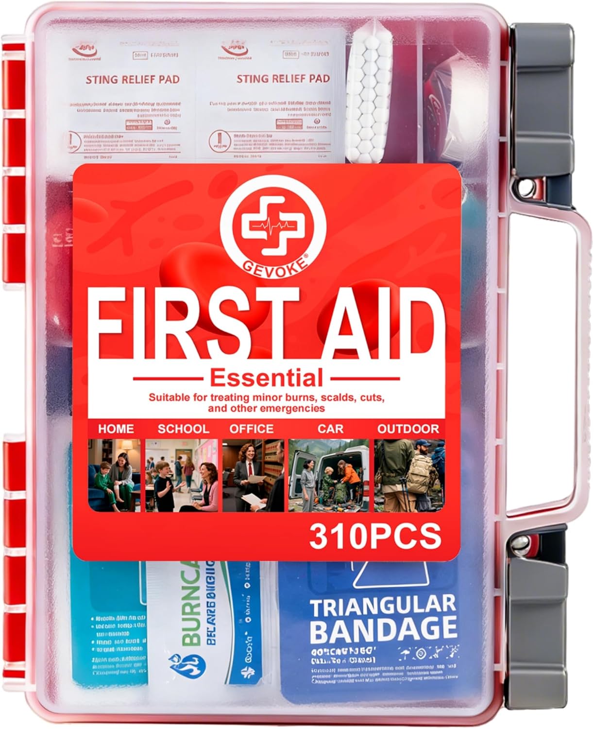 Gevoke Professional First Aid Kit – 310 Piece HardCase Medical Kit for Home, Car, Camping, Travel, Hiking, Truck, Office, Sports, Vehicle & Outdoor Emergencies