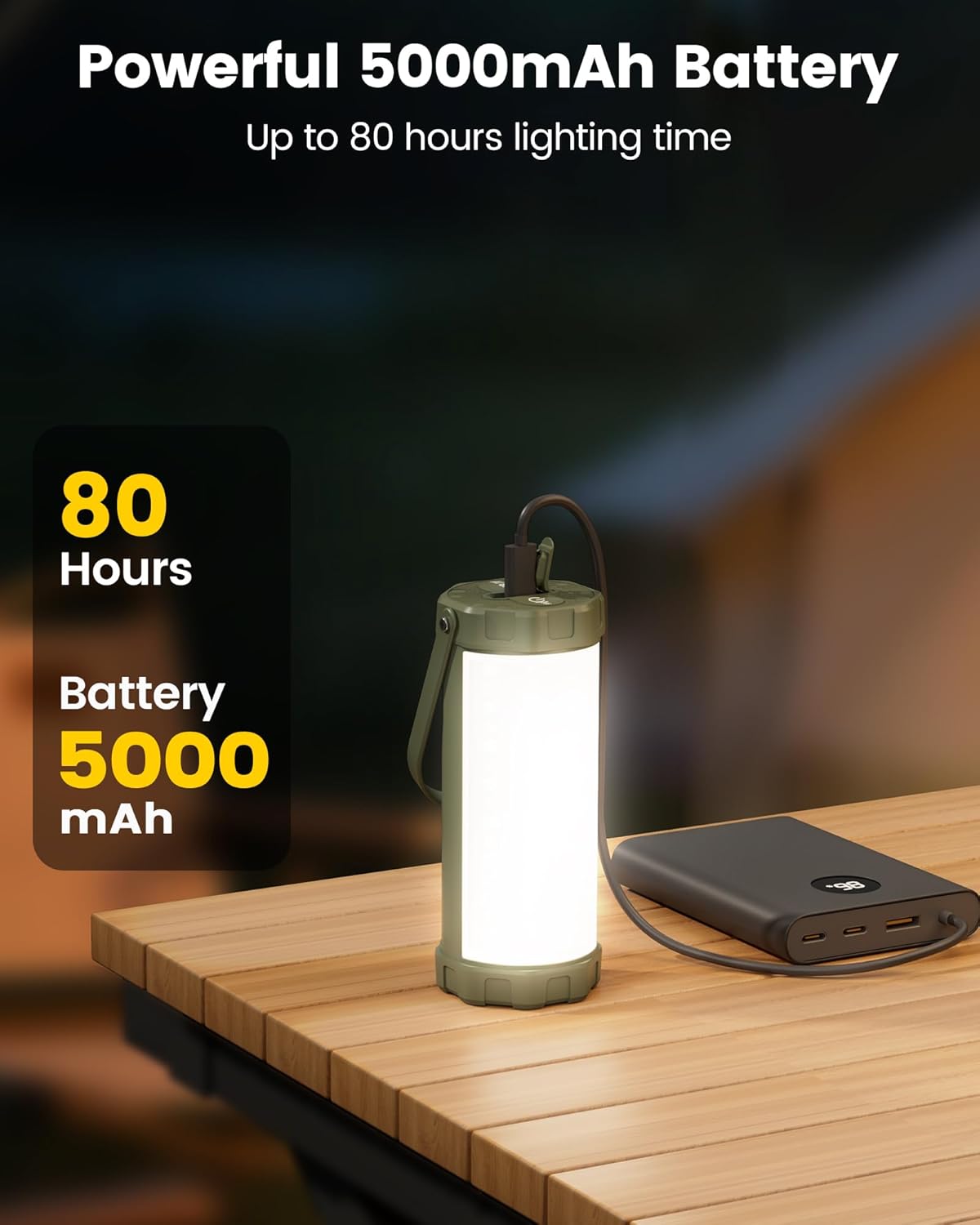 Glocusent 106 LED Camping Lights, Up to 80Hrs, 5000mAh Camping Lantern Rechargeable with 5 Brightness 3 Modes & SOS, IP68 Waterproof, Max 1200LM, Lanterns for Power Outages Hiking Emergency Hurricane