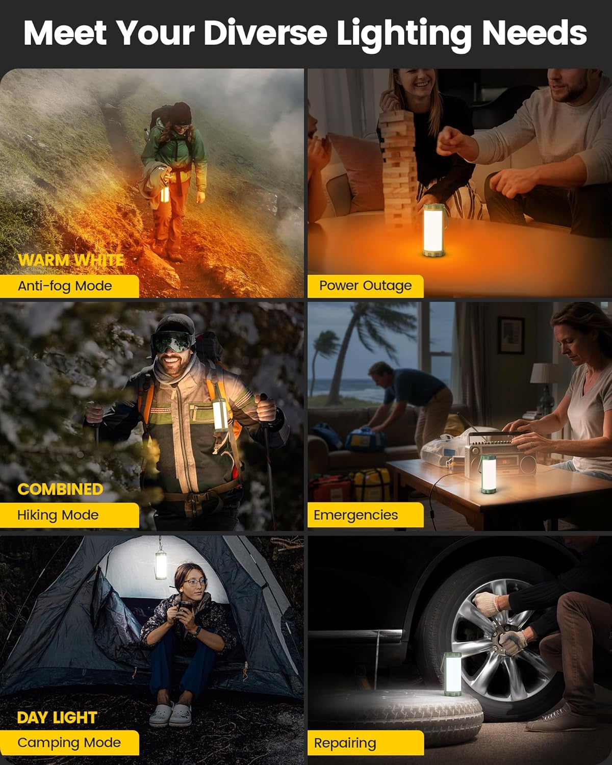 The Glocusent 106 LED Camping Light is designed for outdoor enthusiasts and emergency situations. It features a powerful 5000mAh rechargeable battery, providing up to 80 hours of illumination. With a maximum brightness of 1200 lumens and three adjustable brightness modes, this lantern is versatile for various settings. Its IP68 waterproof rating ensures durability in wet conditions, making it suitable for camping, hiking, and power outages.
