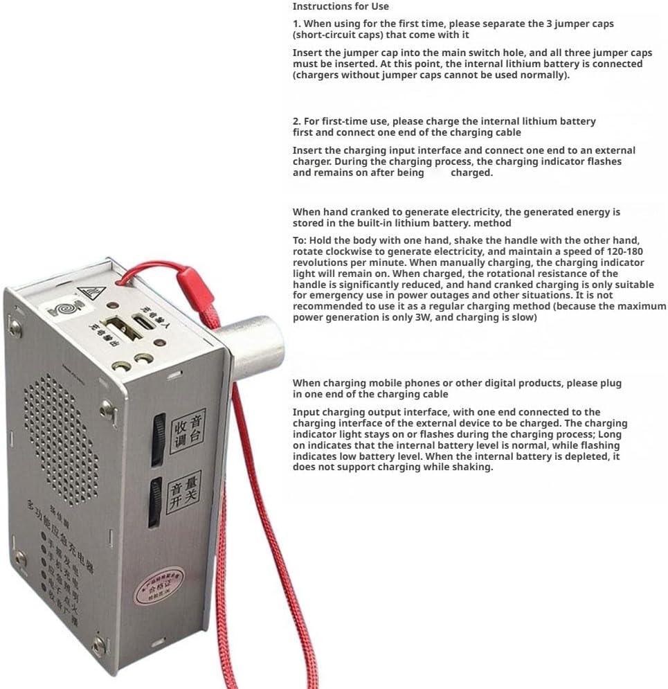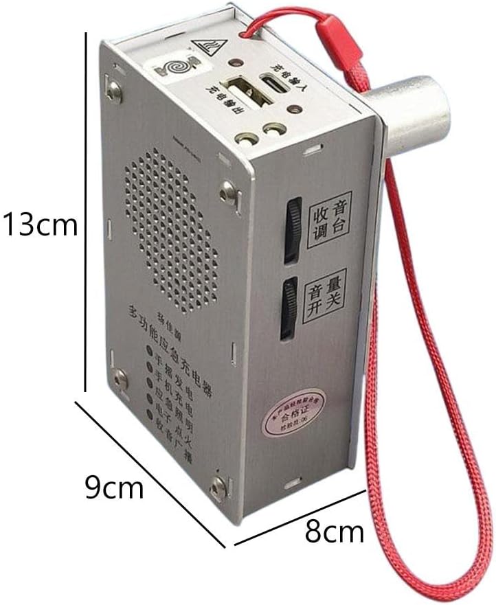 Hand Crank Generator, Emergency Power Bank with Flashlight FM Radio and Plasma Lighter, Portable Aluminum Alloy Survival Gear for Outdoor Camping