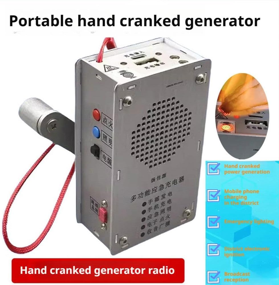 The Hand Crank Generator is an essential tool for outdoor enthusiasts and emergency preparedness. Made from premium aluminum alloy, it is designed to withstand extreme conditions, making it a reliable choice for camping and survival situations. This portable generator features a hand crank charger, allowing you to power up USB devices anywhere, even in remote locations.