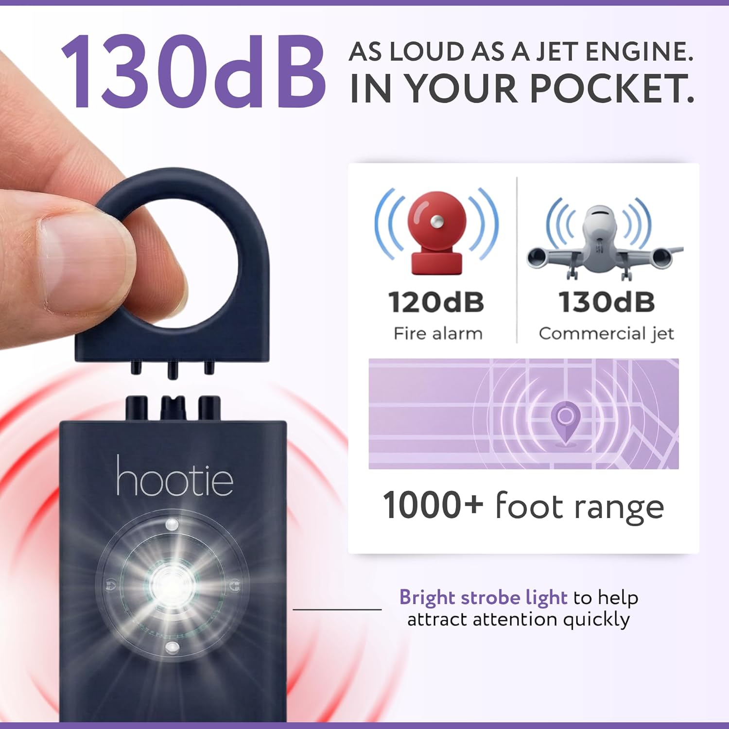 HOOTIE Personal Safety Alarm Keychain, 130dB Personal Alarm for Women Men and Kids, Pull Pin Emergency Panic Alarm with Strobe Light, Portable Self Defence Alarm for Campus Travel and Running – Navy