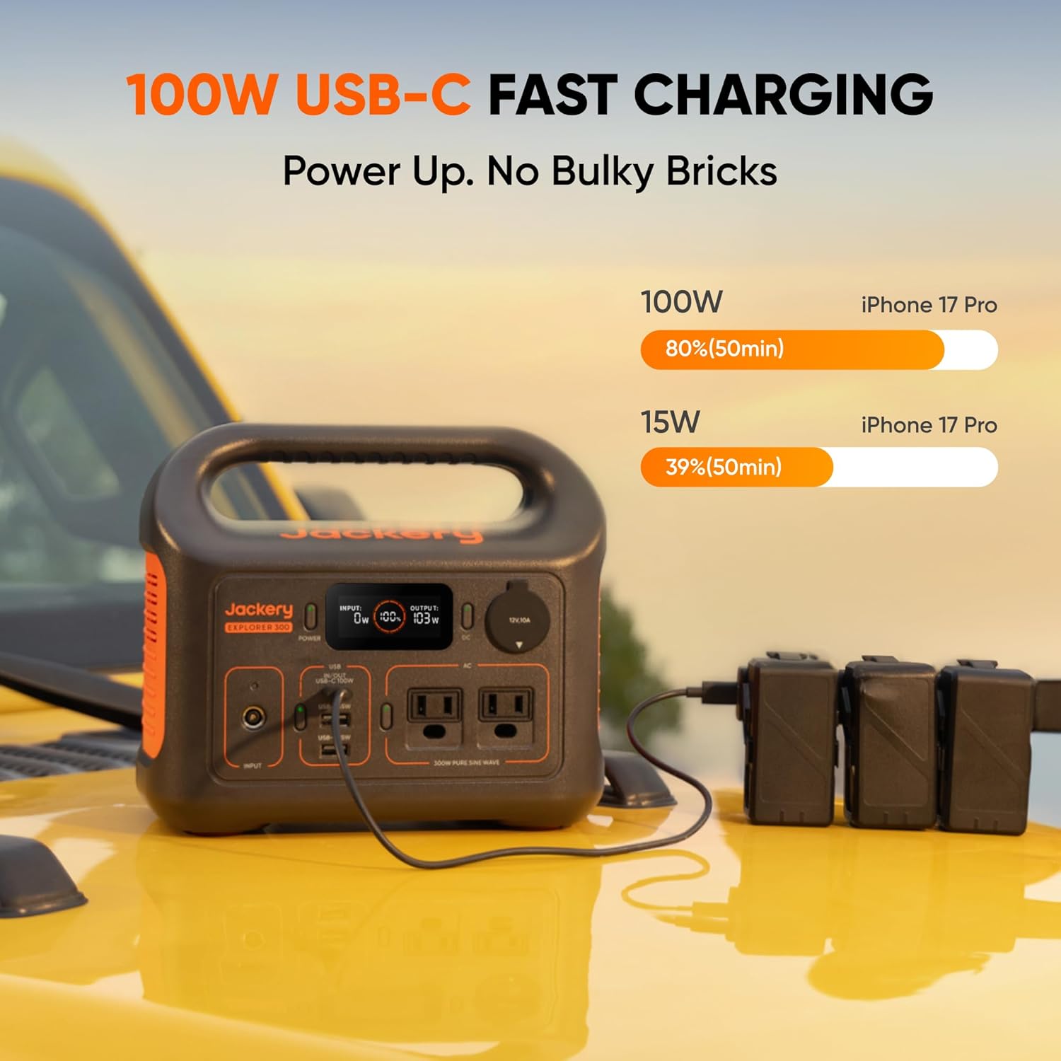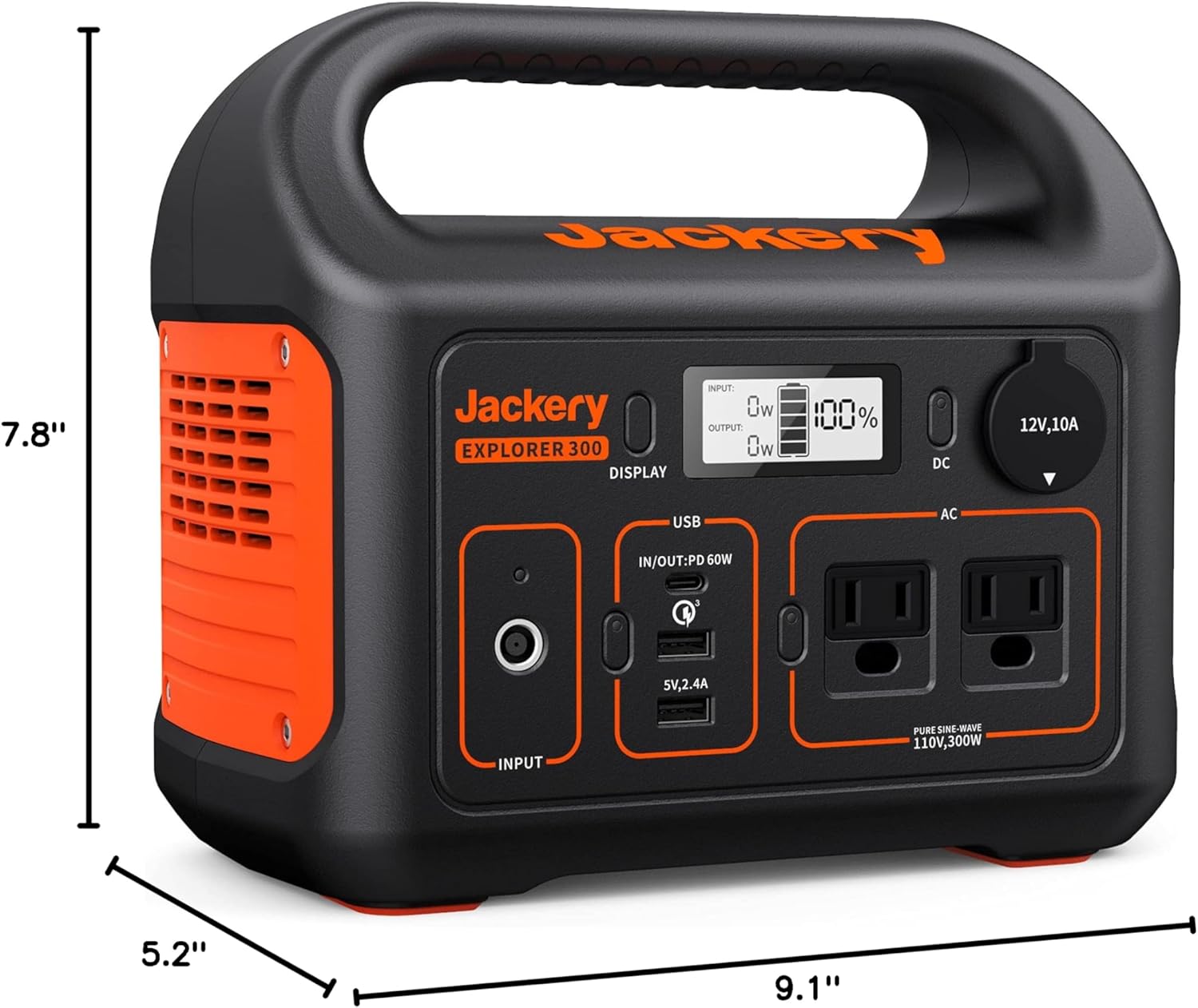 Jackery Portable Power Station Explorer 300, 292Wh Backup LiFePO4 Battery, Solar Generator for Outdoors Camping Travel Hunting Blackout (Solar Panel Optional)