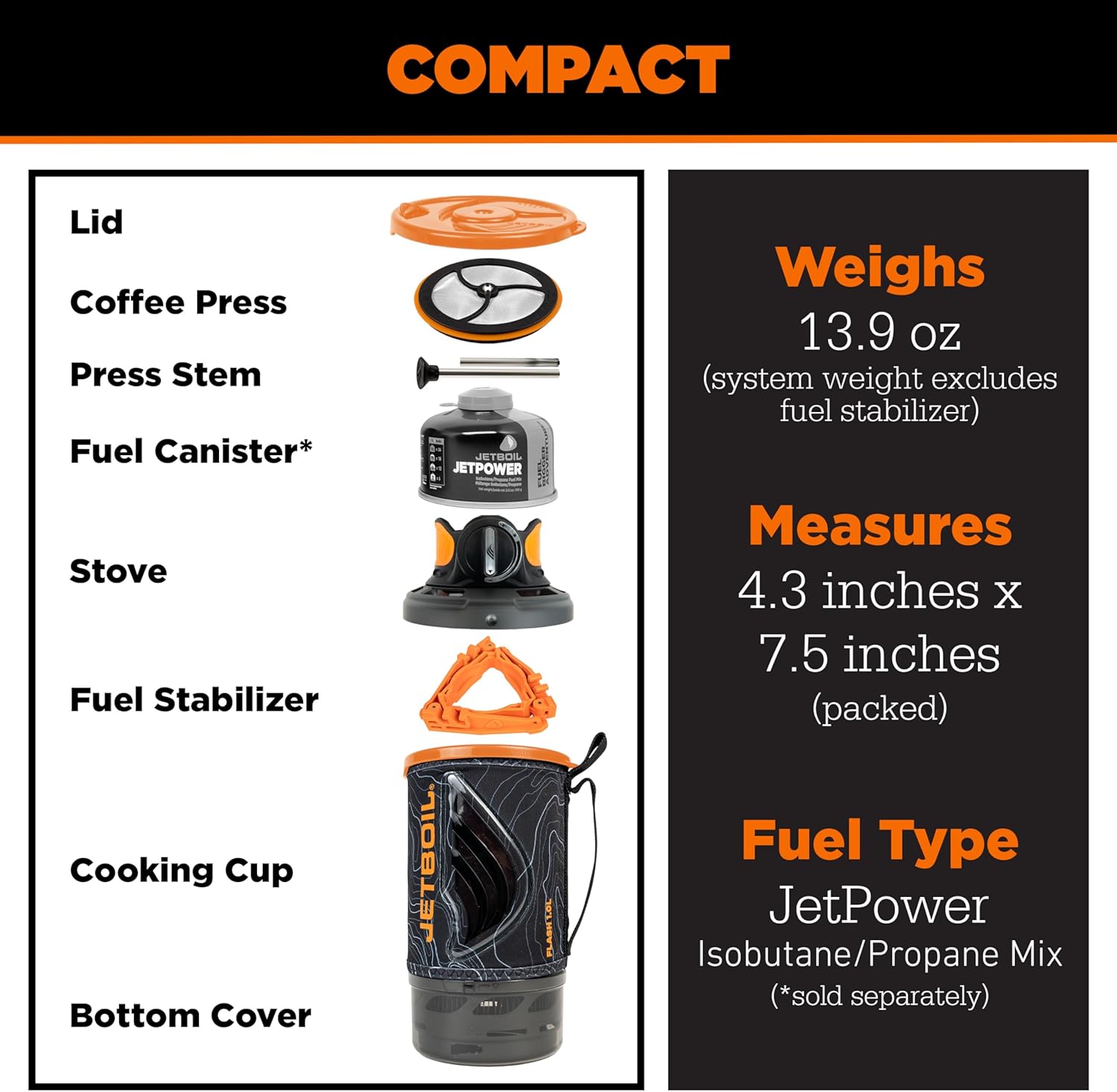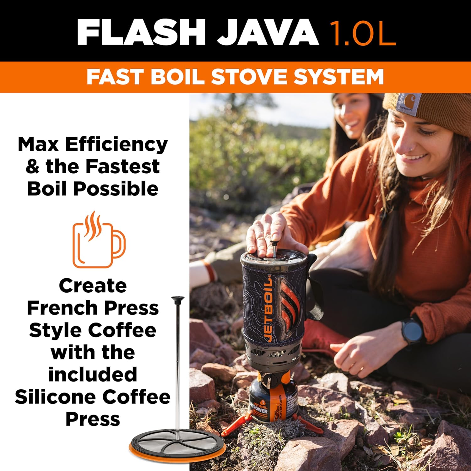 Jetboil Flash Java Portable Fast Boil Stove and Coffee Press for Camping and Backpacking, 1-Step Auto Ignition, Propane/Isobutane Burner