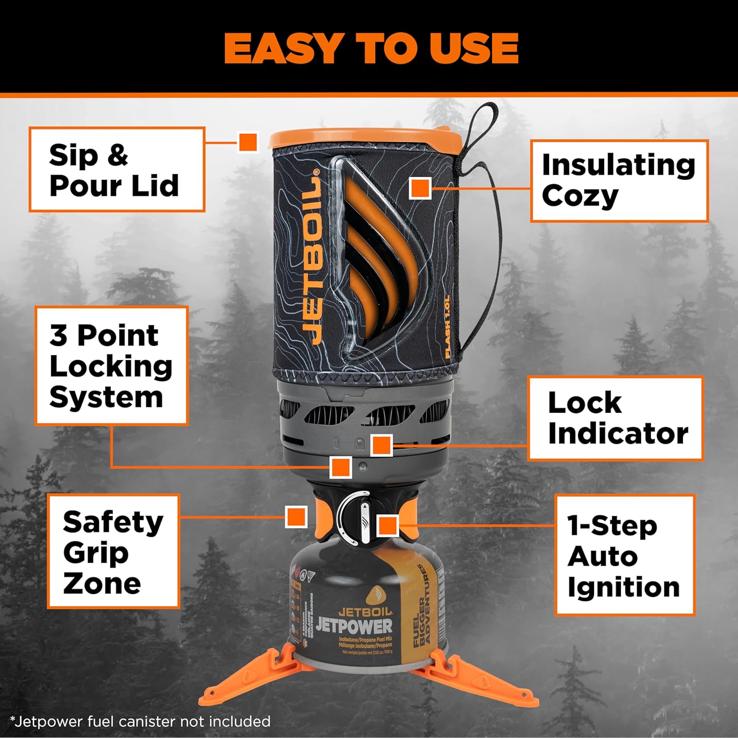 The Jetboil Flash Java Portable Fast Boil Stove is designed for campers and backpackers who need efficiency and convenience. With its one-step auto ignition, you can easily start cooking without matches. The stainless steel burner is reliable and safe, while the Safe-Touch Zones ensure you can handle it comfortably. The improved locking system offers a secure connection between the pot and burner, giving you peace of mind while cooking.