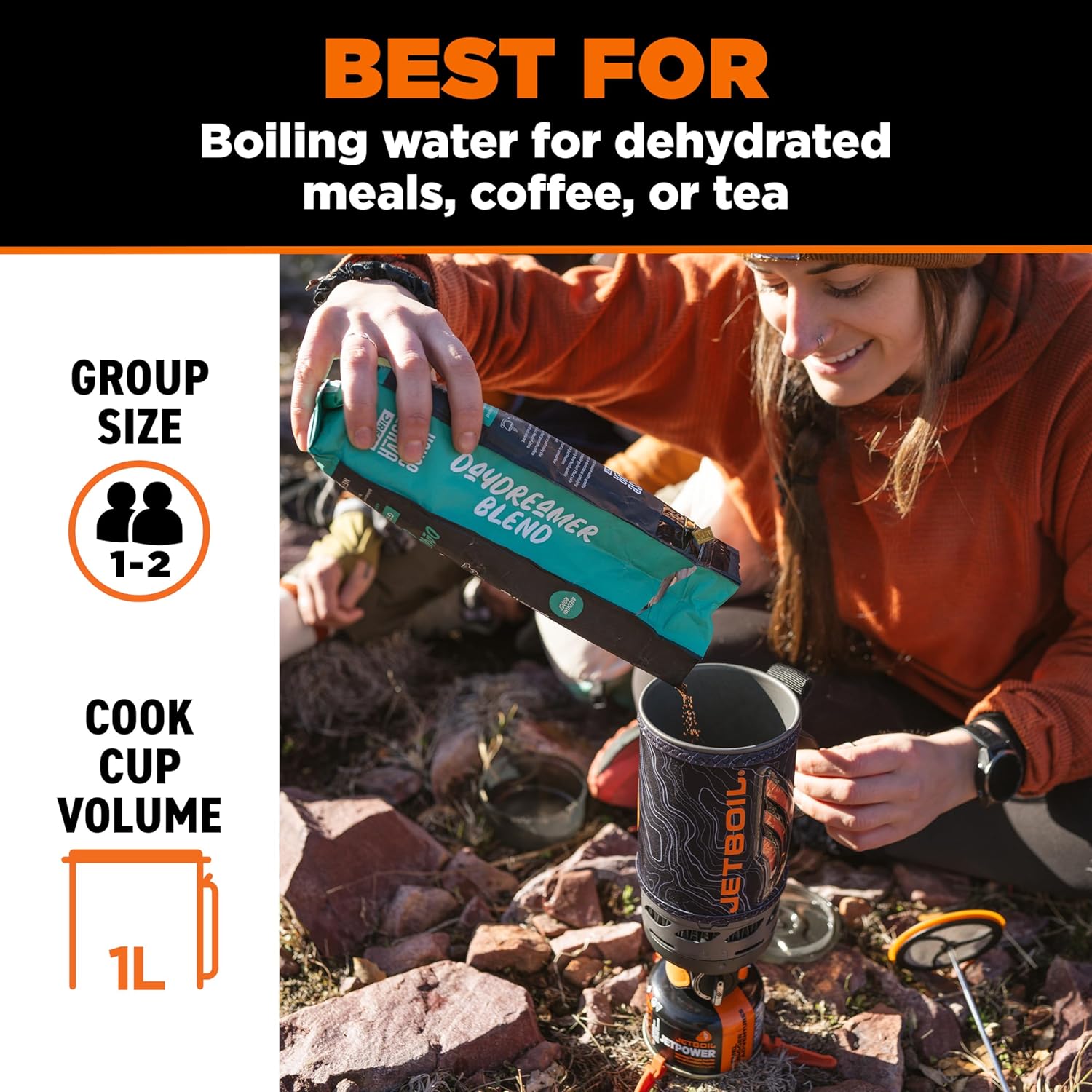- Compact design that packs neatly into a 1-liter cook cup.
