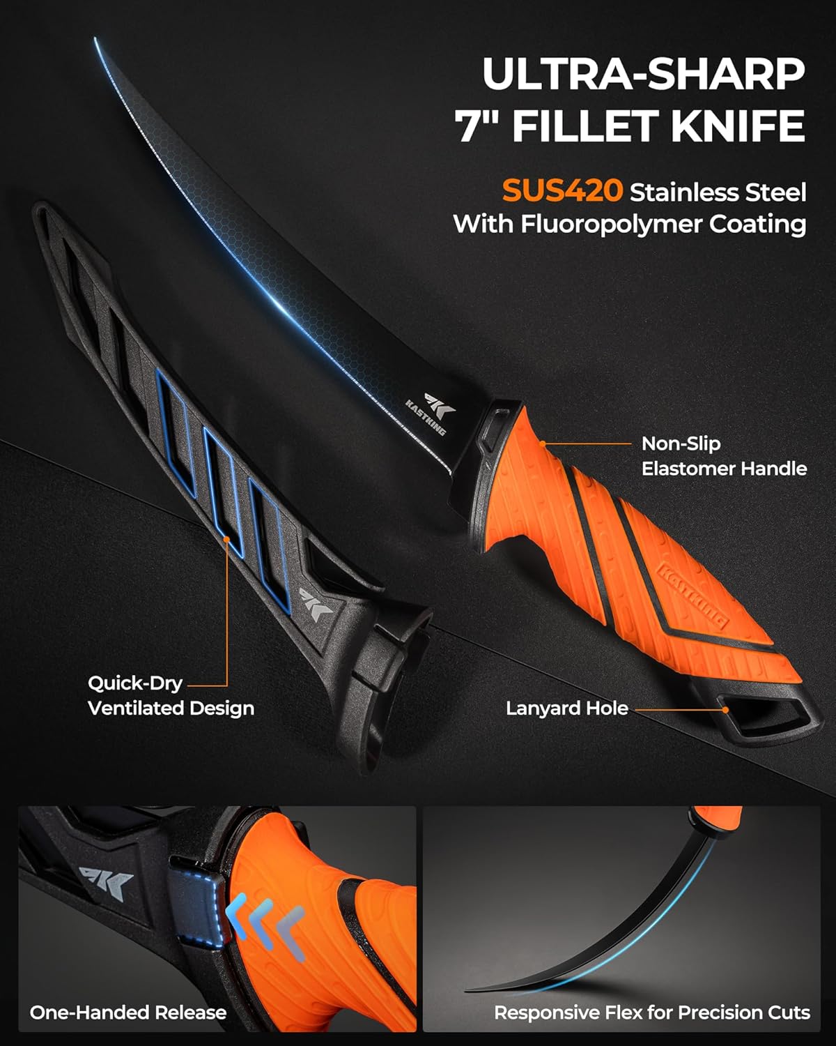 KastKing SteelStream Fishing Tool Set, Fishing Gear – Corrosion Resistant Fishing Pliers, Fillet Knife, Fishing Scissors, Fish Lip Gripper, Multi-Functional Jaw, Fishing Gifts for Men