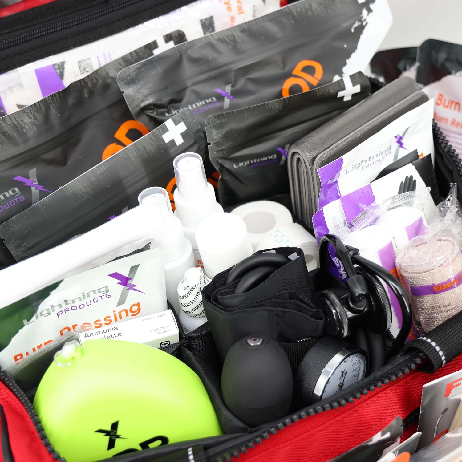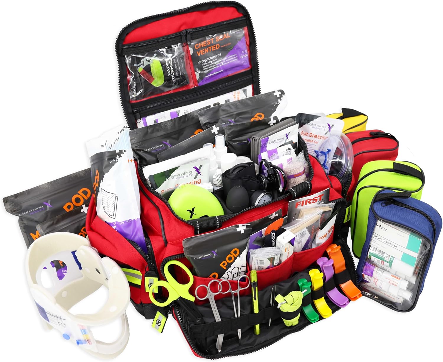Includes essential medical supplies for trauma situations.