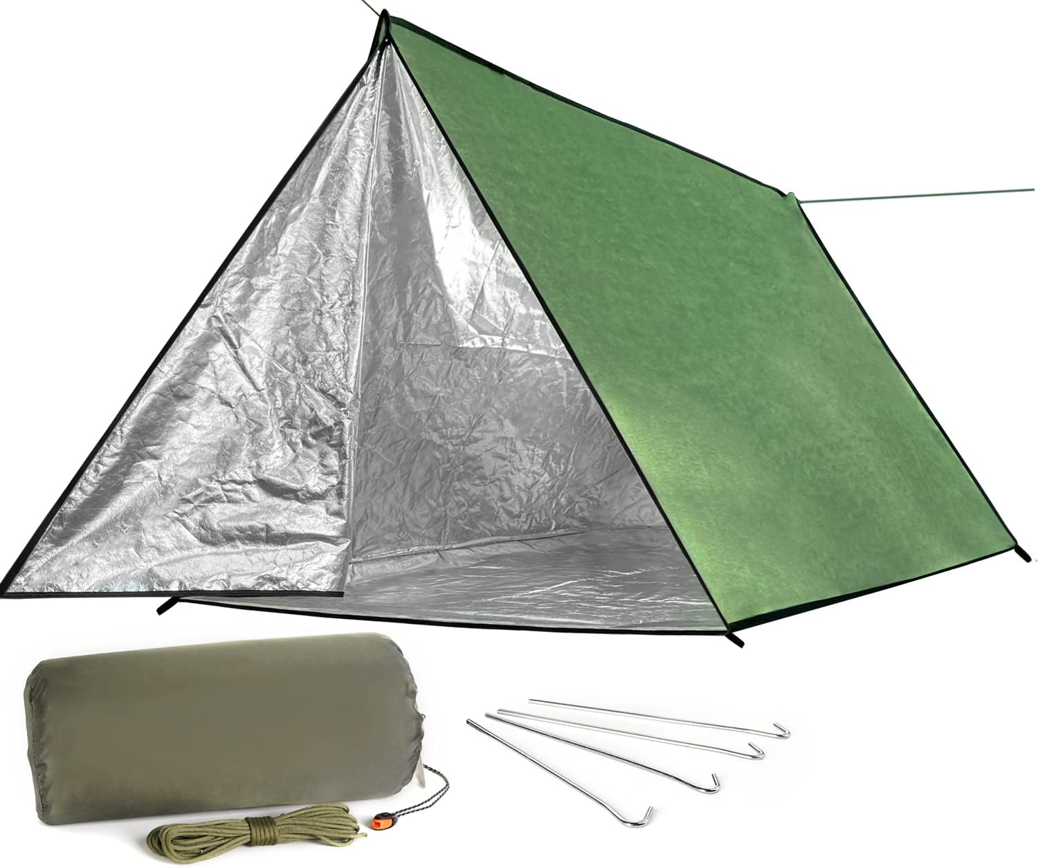 LYN Extra Large Zipper Reusable Survival Emergency Shelter Tent,Thermal Waterproof Fireproof Lightweight Bugout, with Paracord✚Stake for Camping,First Aid,Hiking&Bushcraft