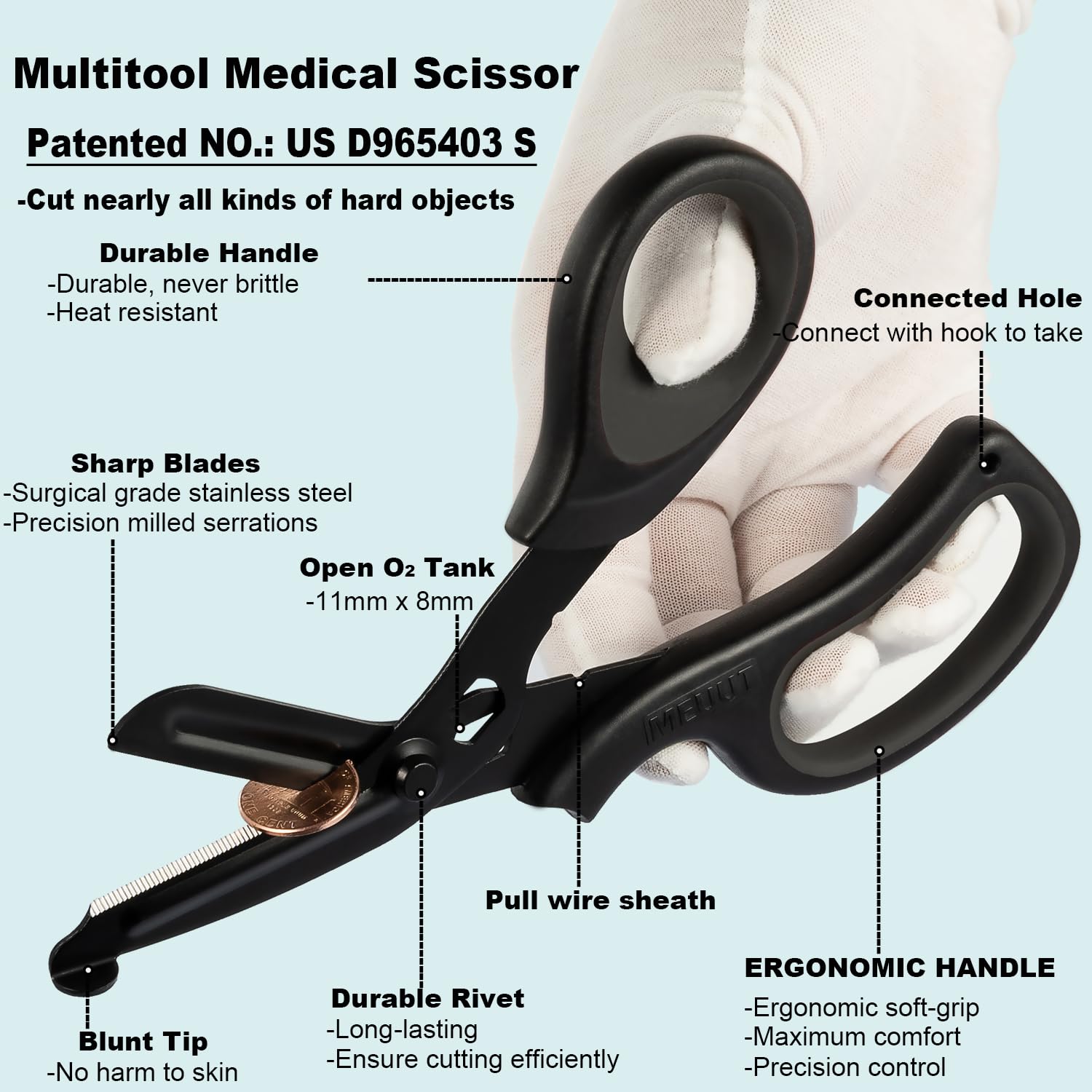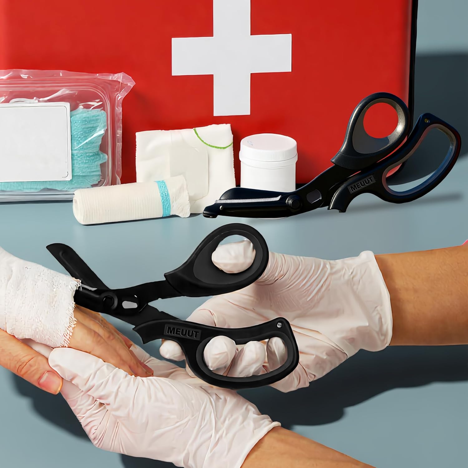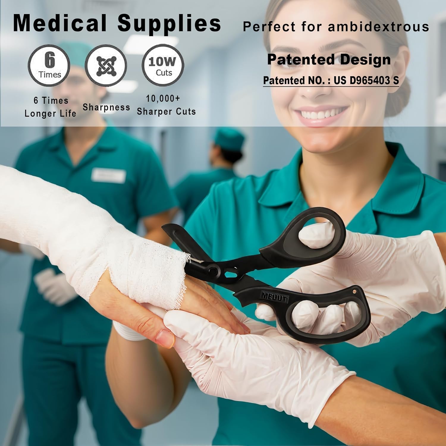 The MEUUT 2 Pack Medical Scissors Trauma Shears are designed for both left and right-handed users, making them versatile for various applications. These patented bandage scissors are ideal for medical professionals, outdoor enthusiasts, and home use. Crafted from surgical-grade stainless steel, they feature non-stick blades that enhance cutting efficiency and ease of use.