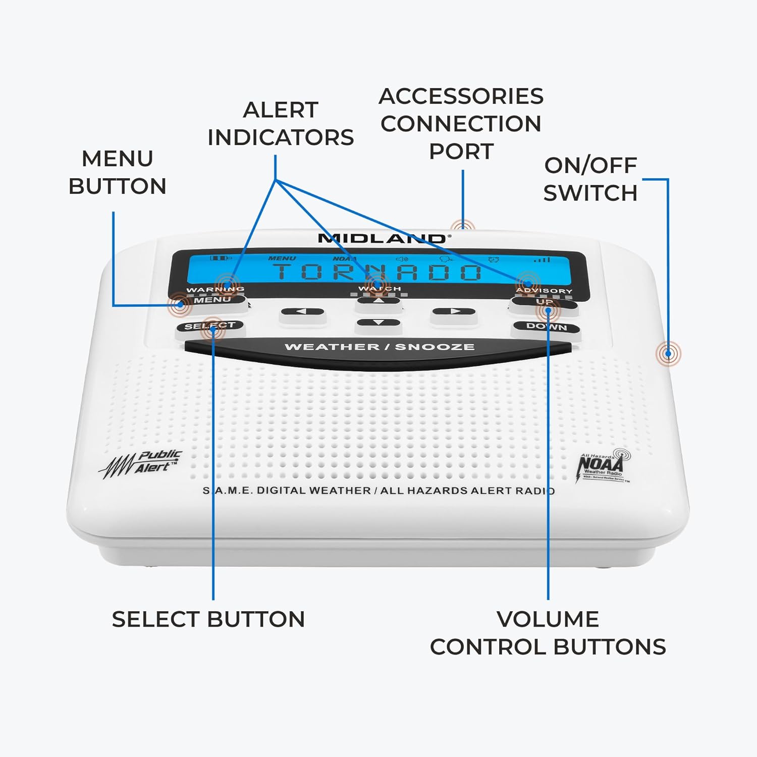 Midland – WR120B – NOAA Emergency Weather Alert Radio – Localized Programming, Trilingual Display, 60+ Emergency Alerts, Alarm, Selectable Alert Tone