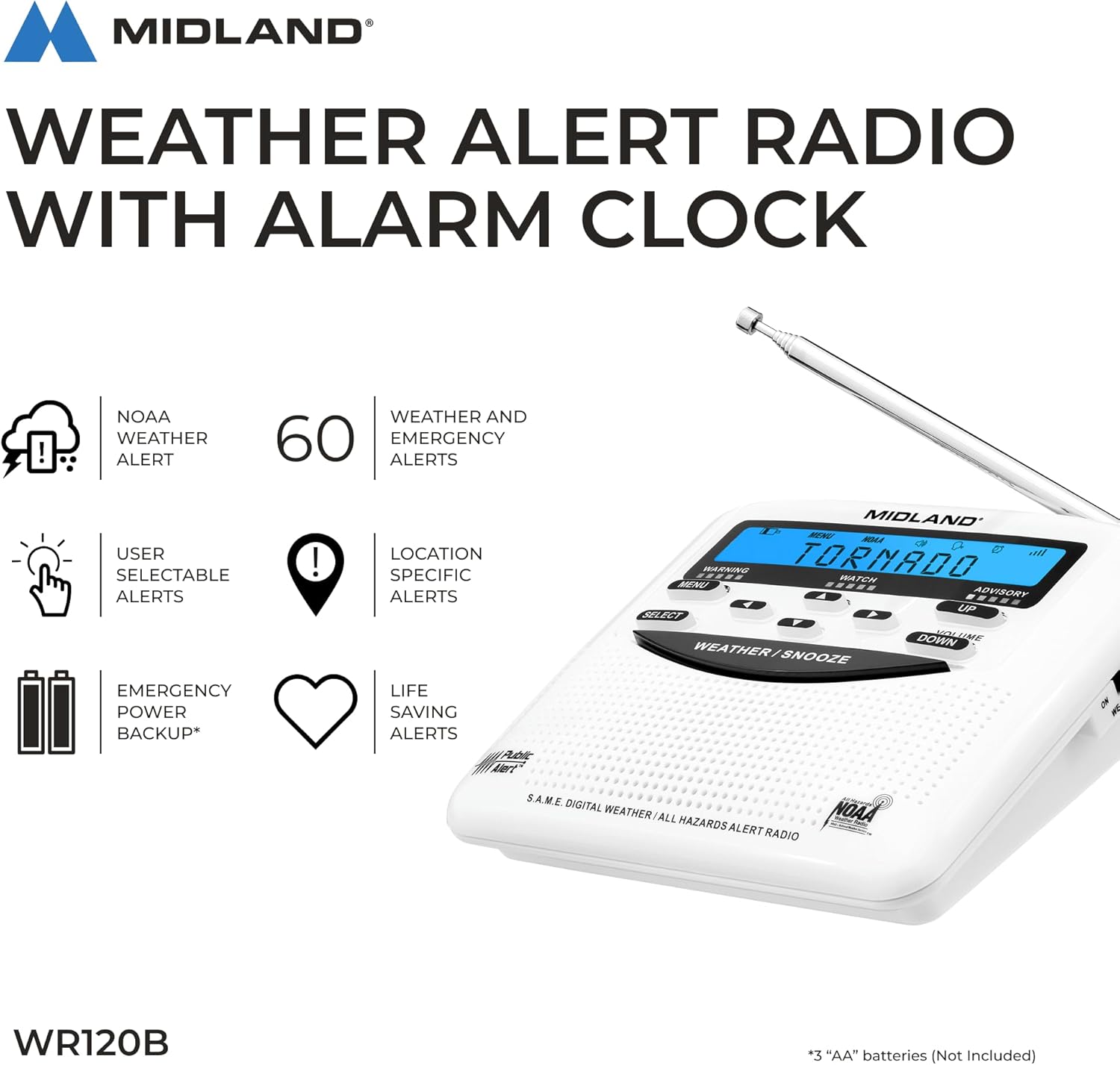 The Midland WR120B can receive over 60 different emergency alerts.