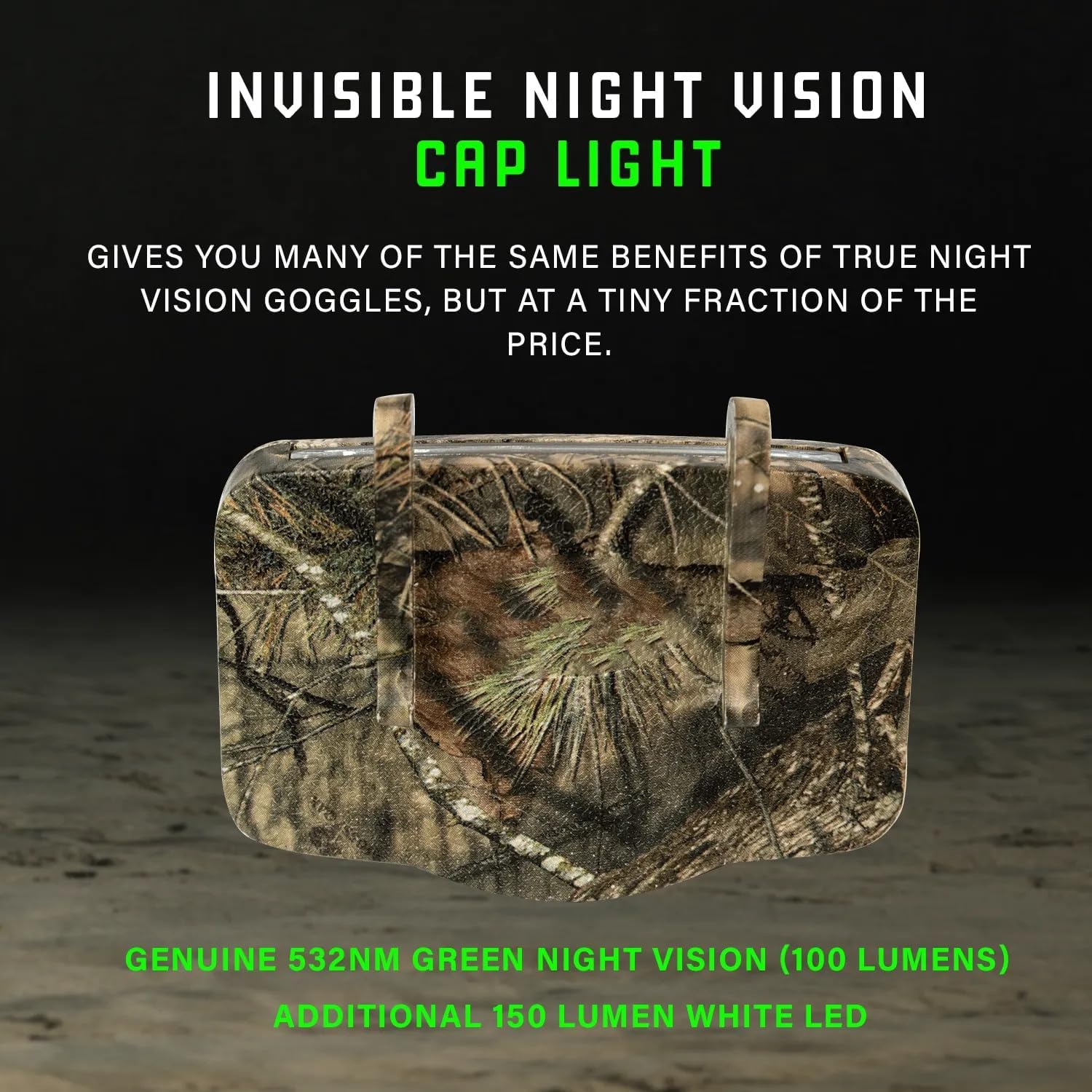 MODERN NEEDS Night Vision Cap Light –Compact, Clip-On Hat Flashlight Powered by AAA | Dual LED Modes for Camping & Hunting | Lightweight Hat Flashlight for Billed Hats Suitable for Outdoor use Camo