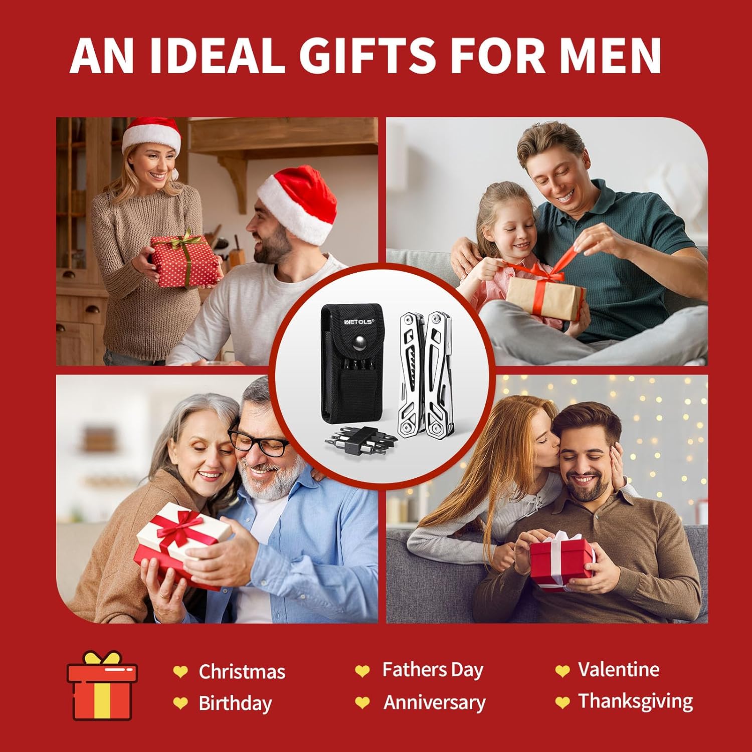 Multitool with Pocket Knife, Birthday Gifts for Men Women Mom Dad, WETOLS 21-in-1 Stainless Steel Pliers with Screwdrivers, Self-locking Multi tools with EDC Sheath, Ideal for Home, Camping, Survival